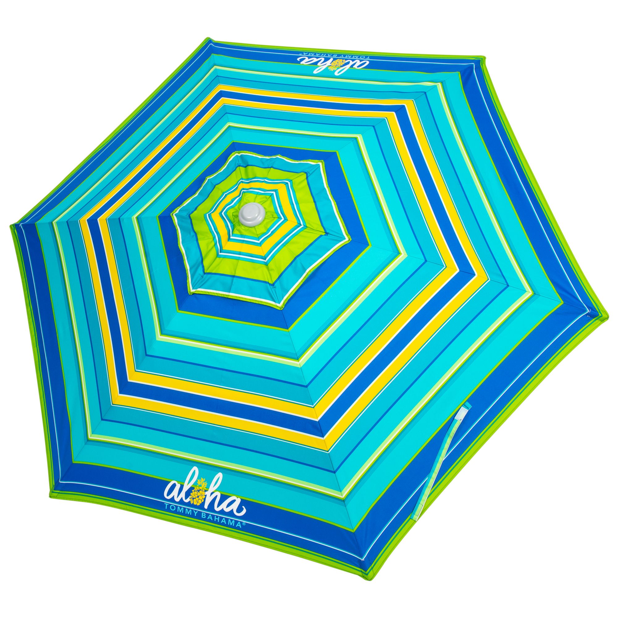 Built in sand anchor mechanism on lower pole Telescoping pole feature allows for multiple height settings Recommended by The Skin Cancer Foundation Includes Tommy Bahama Beach Umbrella