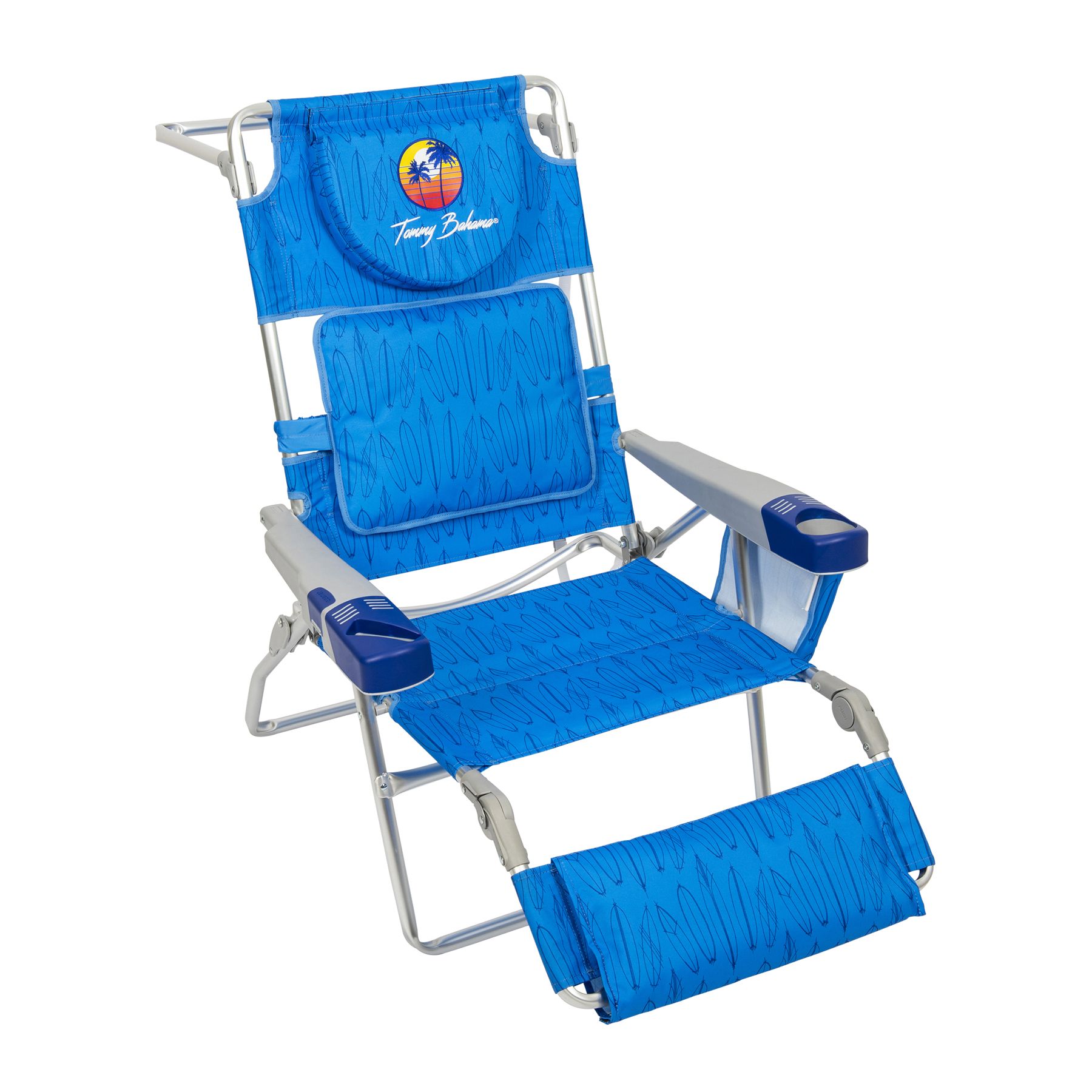 The prints are exclusive to BJ's Tommy Bahama branded Cooler bag, lumbar pillow, and foot rest Wide molded arms Five positions Cell phone pocket and drink holder Includes read-through lounger