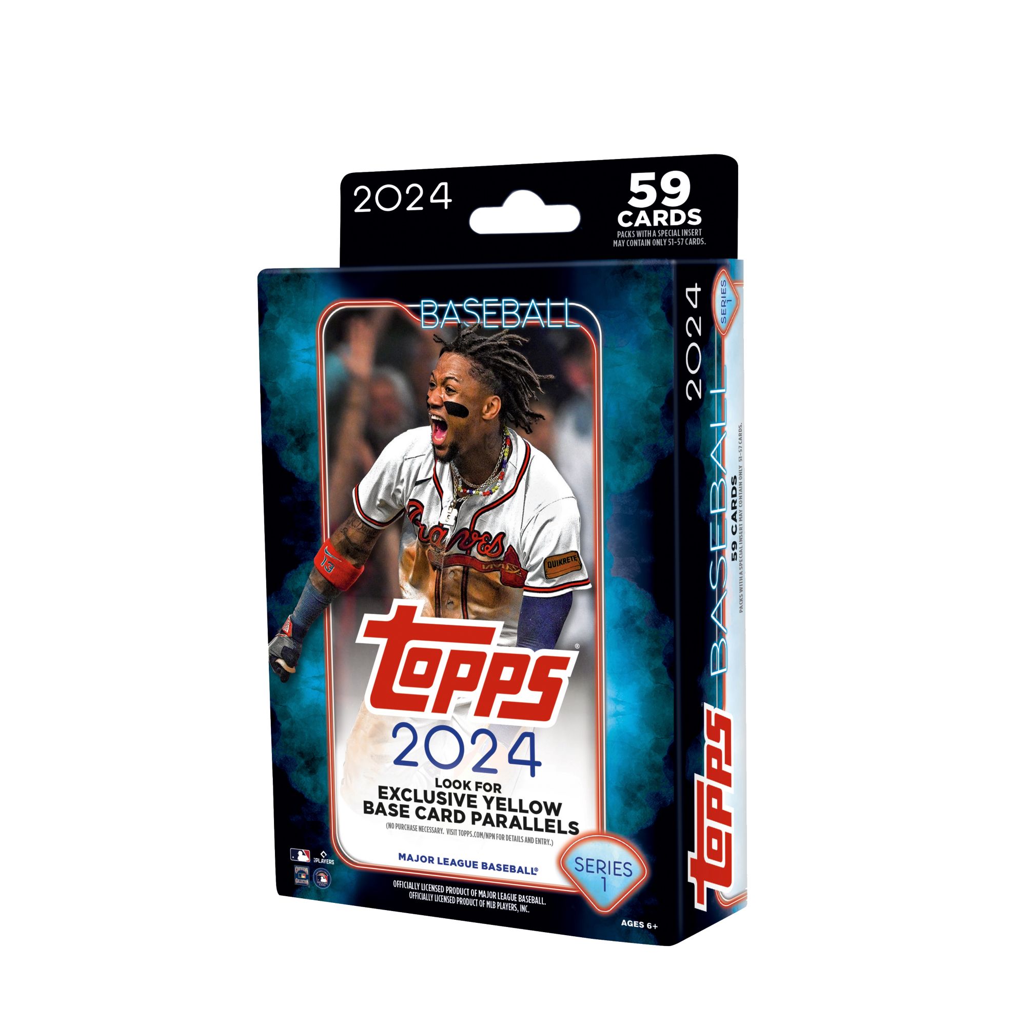 Celebrate the unofficial beginning of the 2024 baseball season when Topps Baseball Series 1 hits shelves in February 2024. In this 350-card set, Collectors will find the league’s current stars, greats from the past and rising rookies featured on base, inserts autographs and relic cards. Each hanger box contains (59) 2024 Topps Baseball Series 1 Cards.