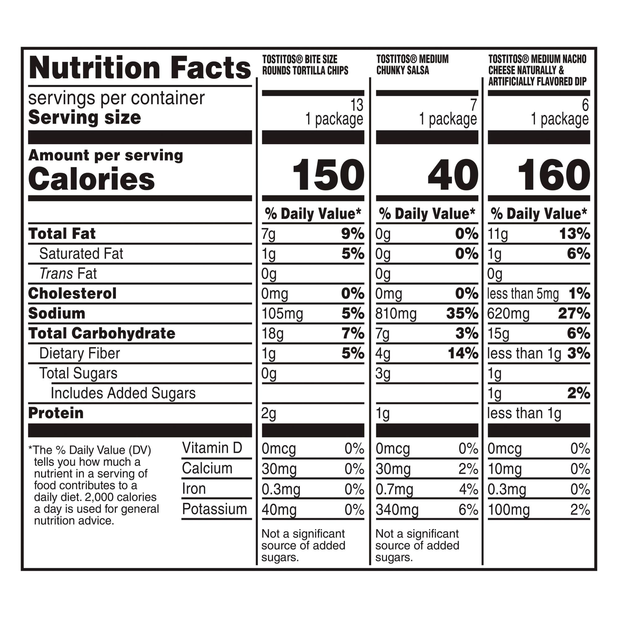 Small enough to dip into a cup of salsa and just the right size for a single bite, Tostitos Bite Size Tortilla Chips are the perfect way to dip into big flavor. This Tostitos Variety Pack includes 13 bags of tortilla chips, 7 salsa dips and 6 queso dips so you can enjoy your favorite Tostitos pairings anytime and anywhere.