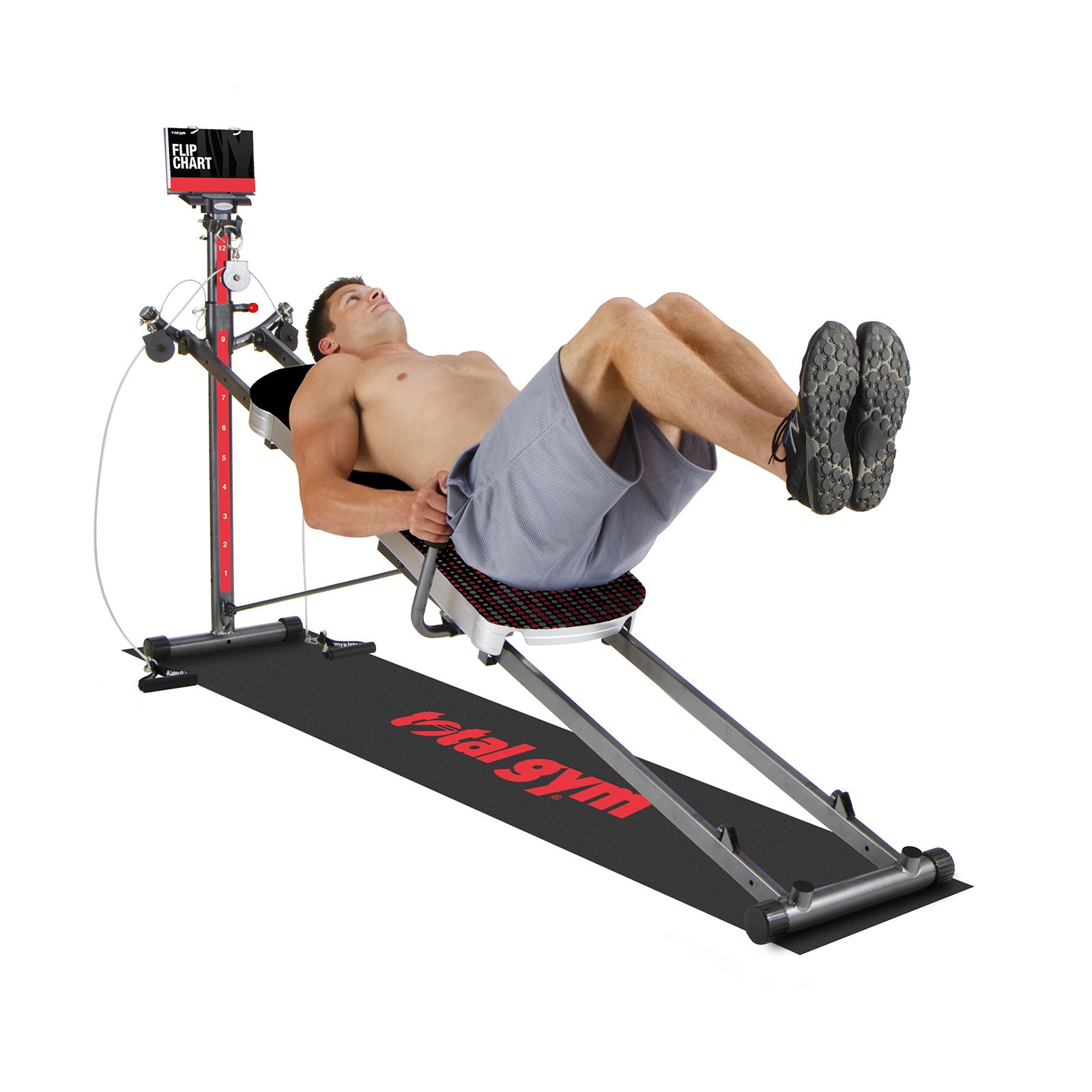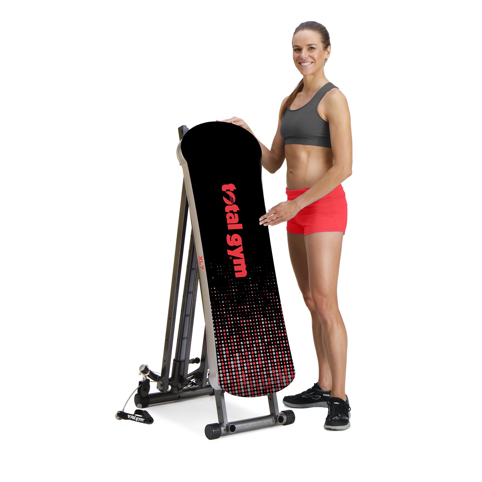 Versatile gym in the comfort of your home Over 60 different exercises Uses body resistance to strengthen and tone muscles Multifunctional attachments 12 calibrated resistance levels Cardio, strength training and stretching all in one machine User weight capacity is 350 lbs. Quick, easy set up Folds for storage Includes Total Gym XL7 with DVDs