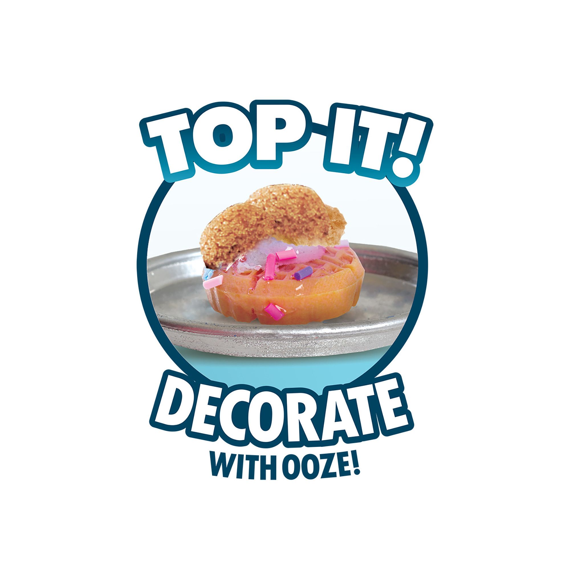 • Includes three packets of ooze, sand, topping, milk, bowl, unicorn cake, stack macarons, mixer, two donuts, pack brownies, two sugar cookies, baking tray, three cooking utensils, rolling pin, dessert stand, cake, piece of cake, two cupcakes, waffle maker, two ice cream containers, two ice cream lids, cotton candy, two ice cream bowls, two scoops of ice cream, cake stand, cake stand lid, two ice cream cones, ice cream, cone stand, serving tray, ice cream scoop, waffle, ice cream waffle treat, two chocolate chip cookies, two milkshakes