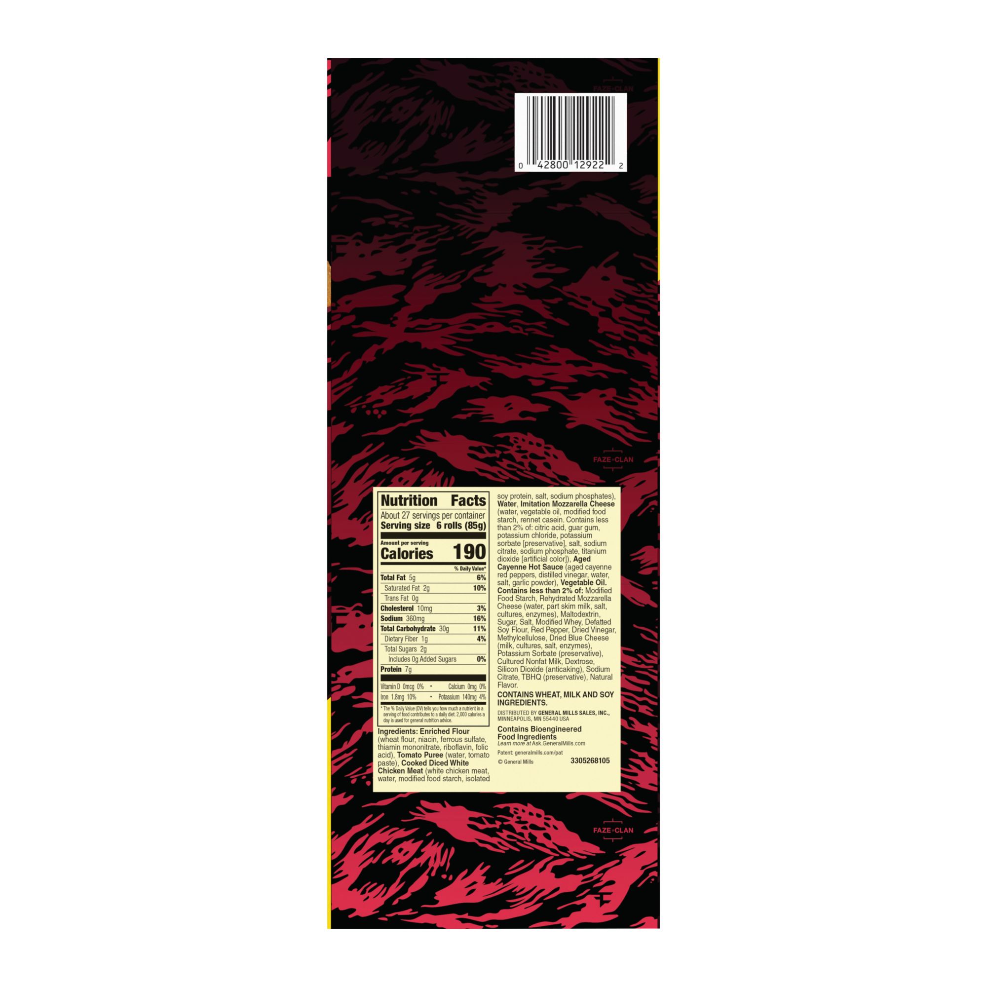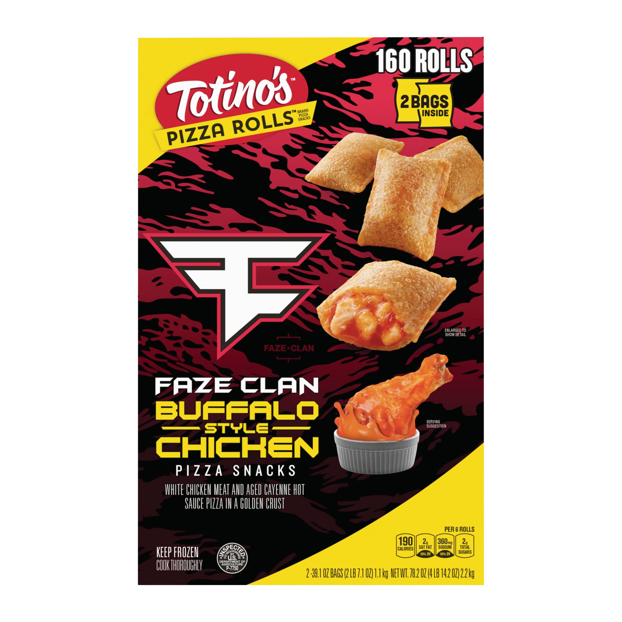 Totino's and FaZe Clan partner to bring you one of the most fan requested flavors, Buffalo Style Chicken Pizza Rolls Snacks; Instructions on the back, deliciousness on the inside