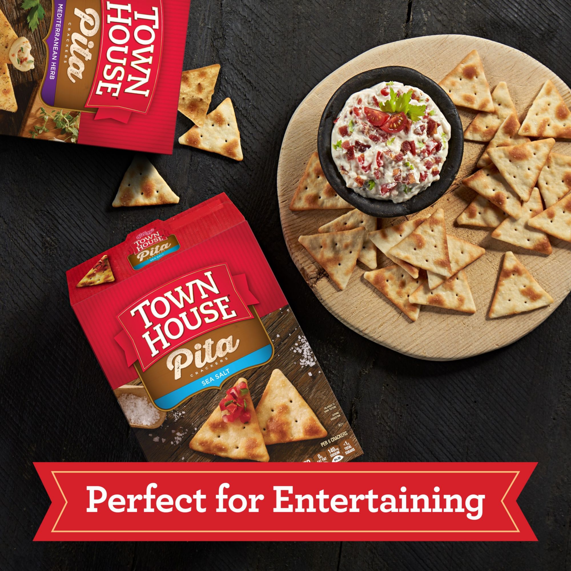 Inspired by pita bread, Town House Pita crackers are a crispy snack that's great between meals or anytime you crave a quick bite. This variety pack includes Sea Salt, Everything, and Mediterranean Herb flavors. With a satisfying taste and crunchy pita texture, each cracker hits the spot when you're hungry or having midday cravings. Delicious as a stand-alone snack, enjoy before or after meetings, classes, and errands; Dip and dunk into hummus, cream cheese, salsa and more, or dream up all-new pairings. Town House crackers are not only versatile, but they can also travel almost anywhere with you as an on-the-go snack. Stock them in your pantry, stow them in your work space, pack for school snacks, and even tote them in your bag as you go about your day. When you want your fill of flavor and a quick delicious snack, Town House Pita crackers are a great-tasting choice to keep within reach.