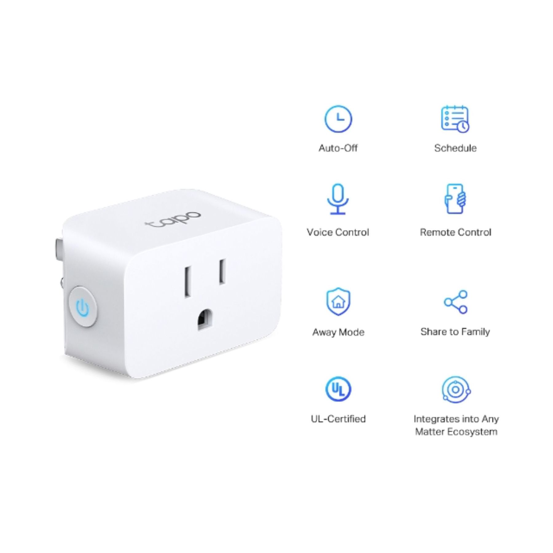 Set your smart switch to turn on and off automatically with a timer or countdown schedule - whether you're home or away. Matter-certified switch to stay in control of your home lighting. Control your devices indoors or out with the Matter-certified plugs.