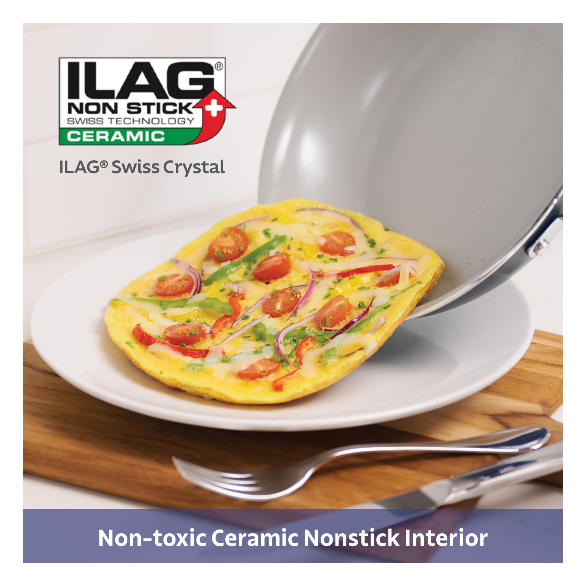 Nonstick ceramic with Swiss crystal interiors and high-temperature silicone exteriors make clean-up quick and easy