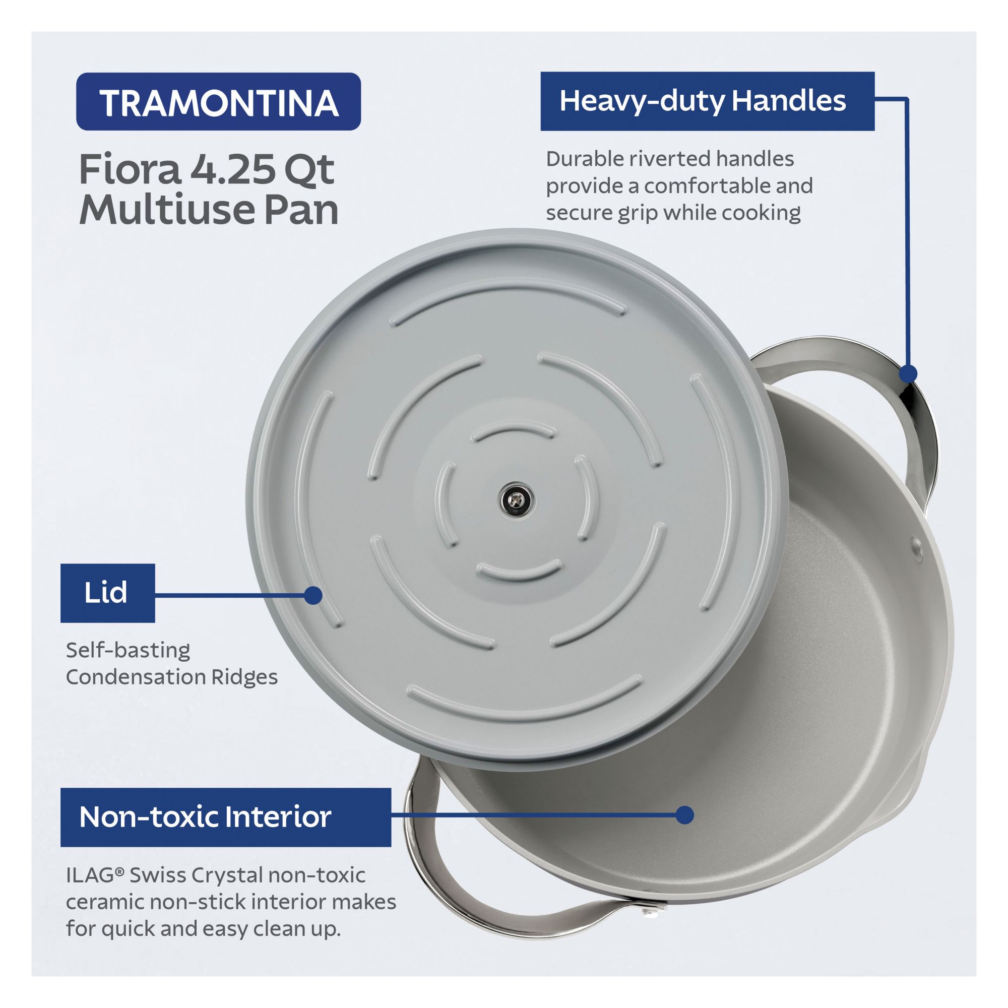 Looking for a single pan that can do it all? Get cooking with the Tramontina 5-Piece Cookware Set, and see how delicious life can be. Perfect for sauteing, searing, stir-frying, braising, simmering and slow-roasting, the Fiora 4.25 Qt Multipurpose Pan is the ultimate tool for all your favorite one-pot recipes. This set includes a Bamboo Utensil and Trivet, so you have everything you need at your fingertips.