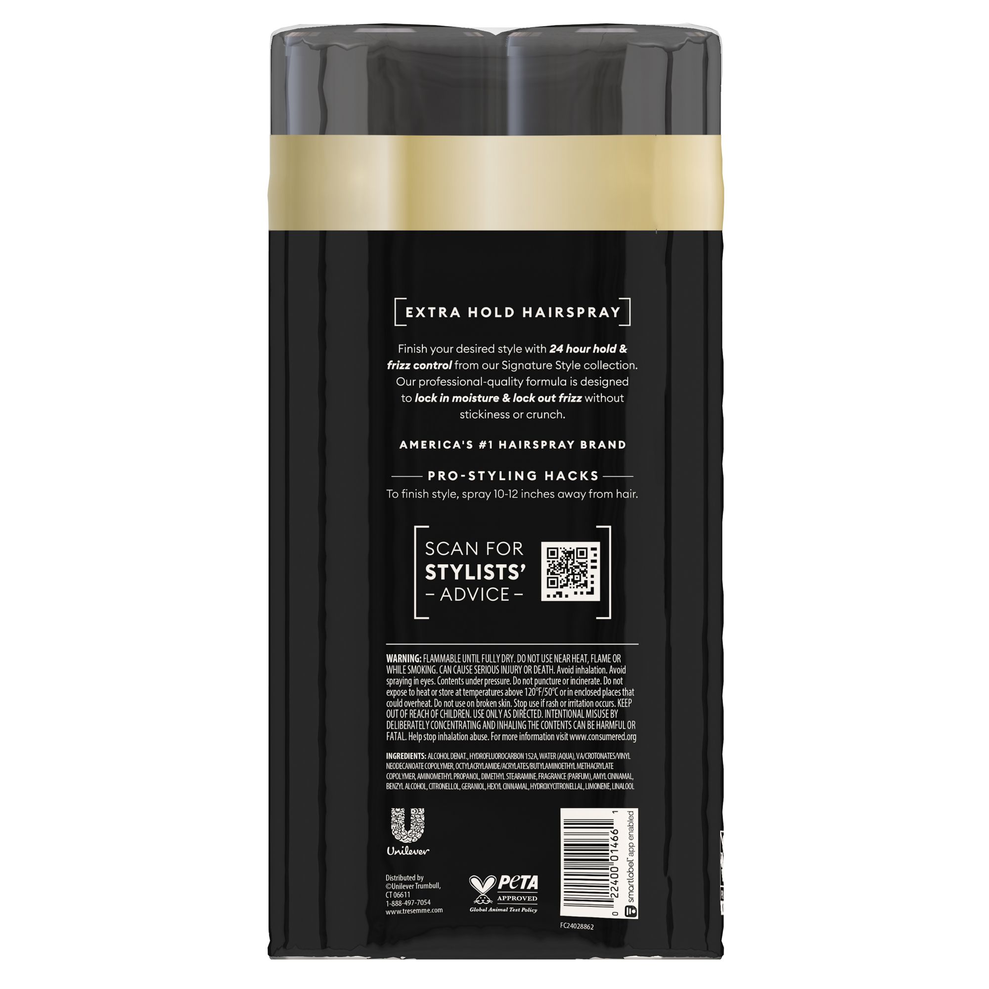 Extra hold hairspray: TRESemme Extra Hold Hairspray provides a salon-style finish and 24-hour hold for your hairstyle without crunch or stiffness.