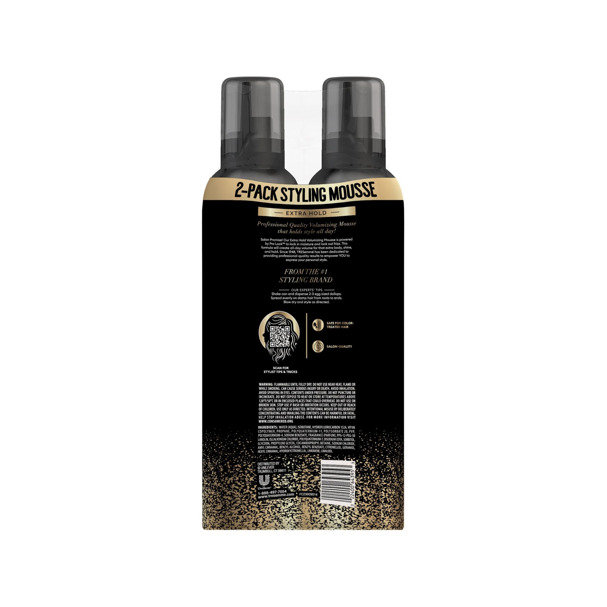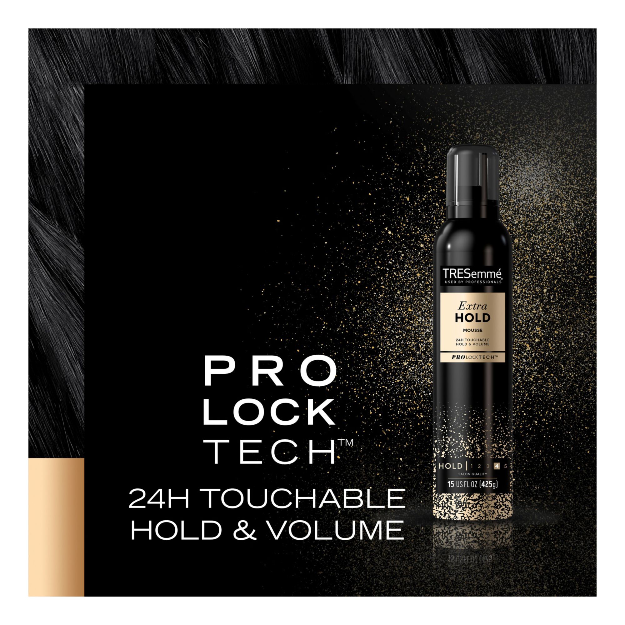 TRESemme Extra Hold Volumizing Mousse is a professional-quality clean-feel mousse that volumizes and holds style. This hair mousse is powered by Pro Lock Tech for 24 hour frizz control and style memory. This styling mousse contains holding polymers to expertly iron out stray hairs for controlled flexible styles, not flat and always beautifully full.