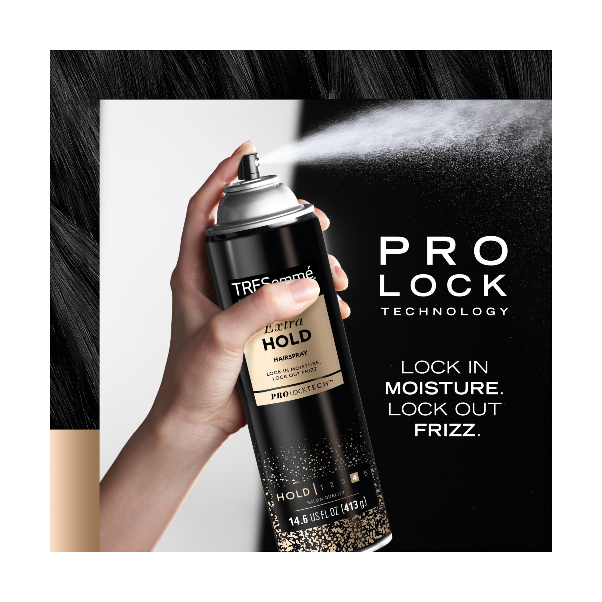 Anti-frizz hair spray: this extra hold hairspray uses locking polymers, making it a humidity resistant hair spray that tames flyaways and holds your hairstyle all day
