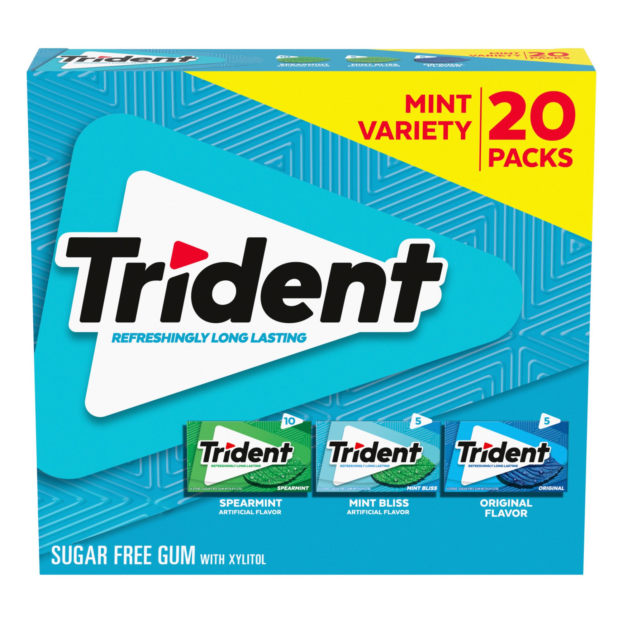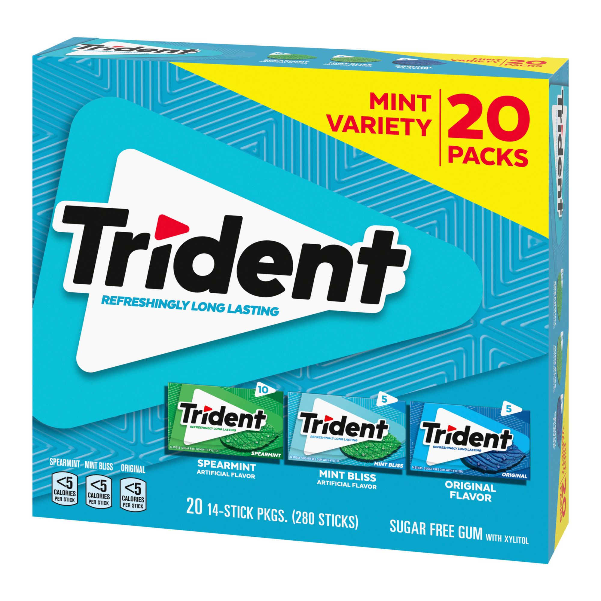 Get close-up confidence with Trident Sugar Free Gum, the easy way to freshen breath and help protect against tooth decay. Four out of five dentists recommend chewing Trident after eating and drinking to clean and protect teeth. With 30% fewer calories than sugared gum, Trident is sweetened with Xylitol which provides long-lasting flavor, fights plaque and restores pH balance to maintain healthy smiles. Pop a piece of mouthwatering Trident for a refreshing taste that keeps going as long as you do.