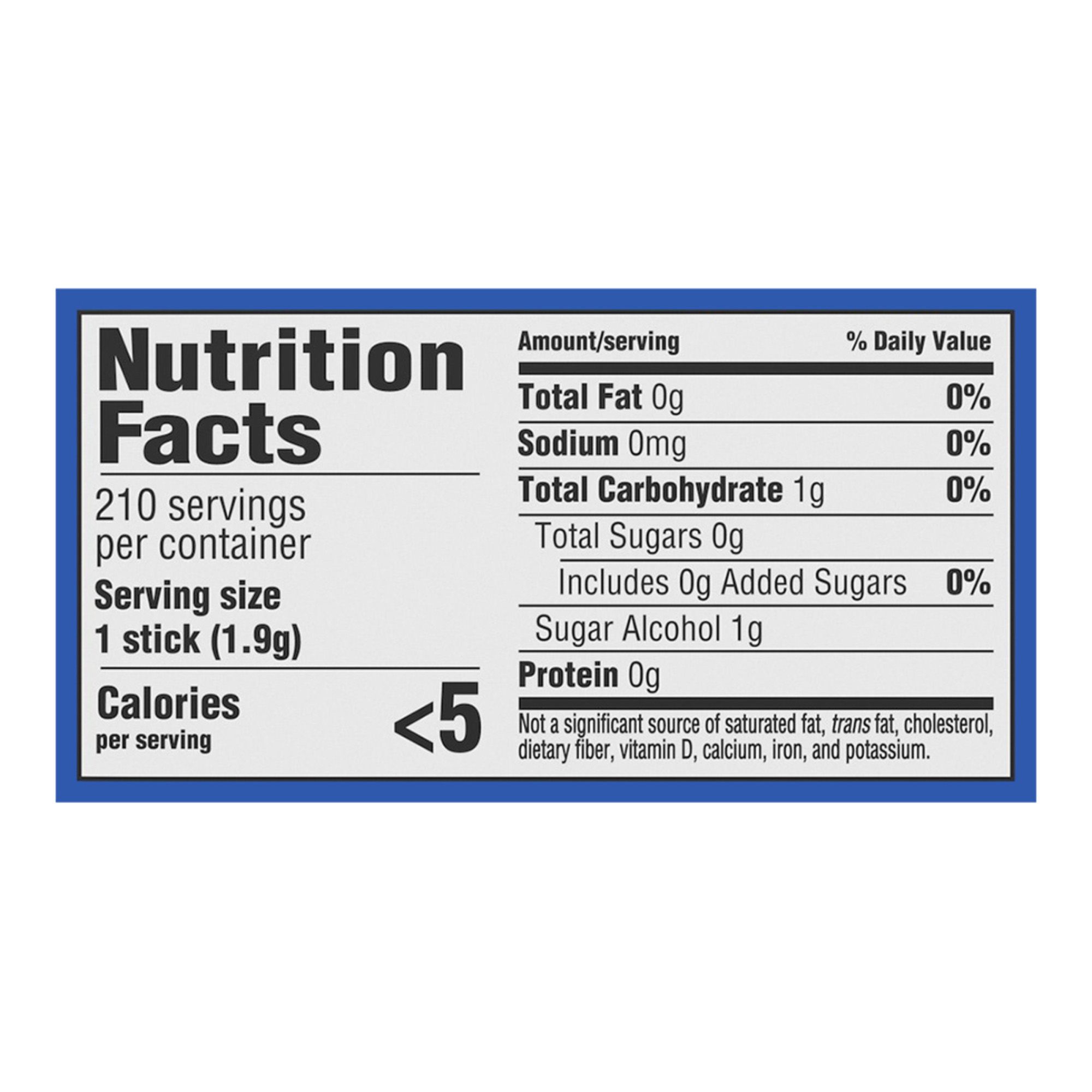 Ingredients: Sorbitol, Gum Base, Xylitol, Glycerin, Natural And Artificial Flavor; Less Than 2% Of: Acesulfame Potassium, Aspartame, BHT (To Maintain Freshness), Mannitol, Soy Lecithin, Sucralose.