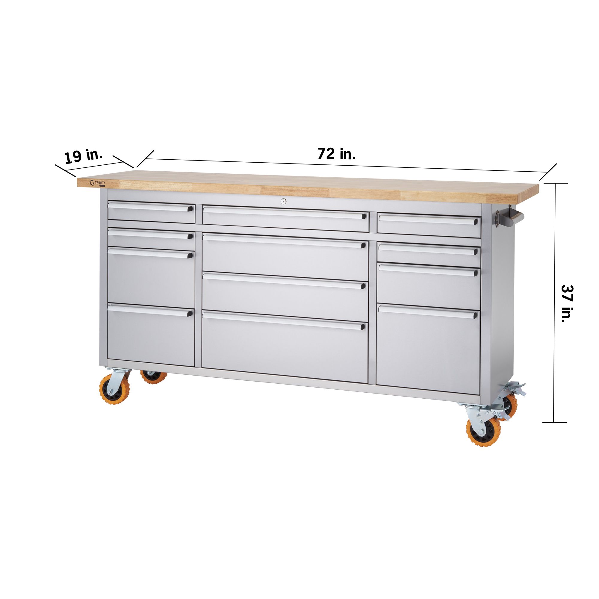 Trinity Pro 72" x 19" Stainless Steel Rolling Workbench