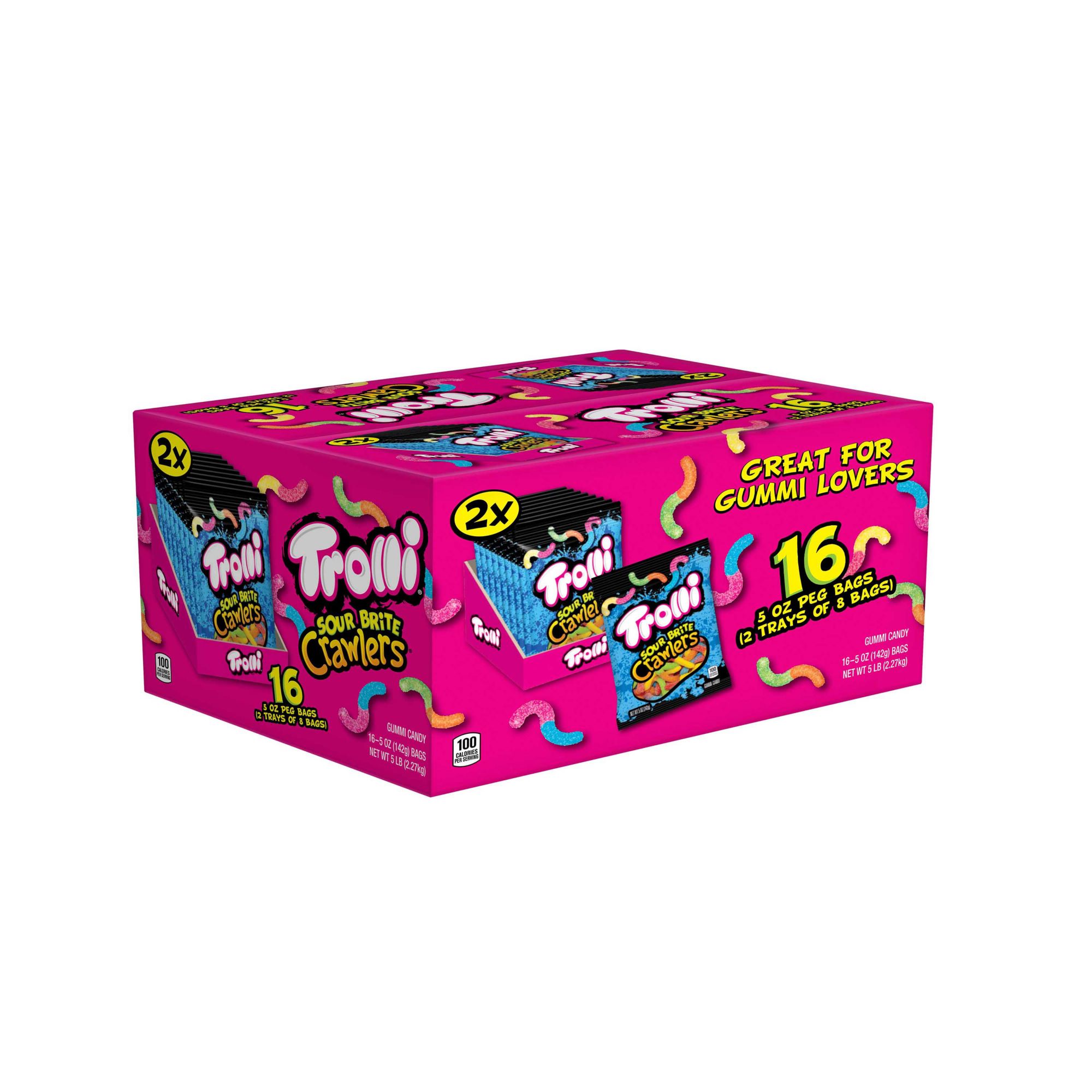 Trolli Sour Brite Crawlers are multi-flavored gummy worms covered in a tongue-twisting sugary goodness, striking the perfect balance of sweet and sour in every bite. The Original flavors include an assortment of combinations; Cherry-Lemon, Strawberry-Grape and Orange-Lime. Play with your food - let your Wild Side out to play and slurp some sour worms, or give a friend a gummy hand. Fill a pinata or candy dish, or sweeten a gift basket. Grab these favorites in bulk, because once the secret's out your candy stash won't last!