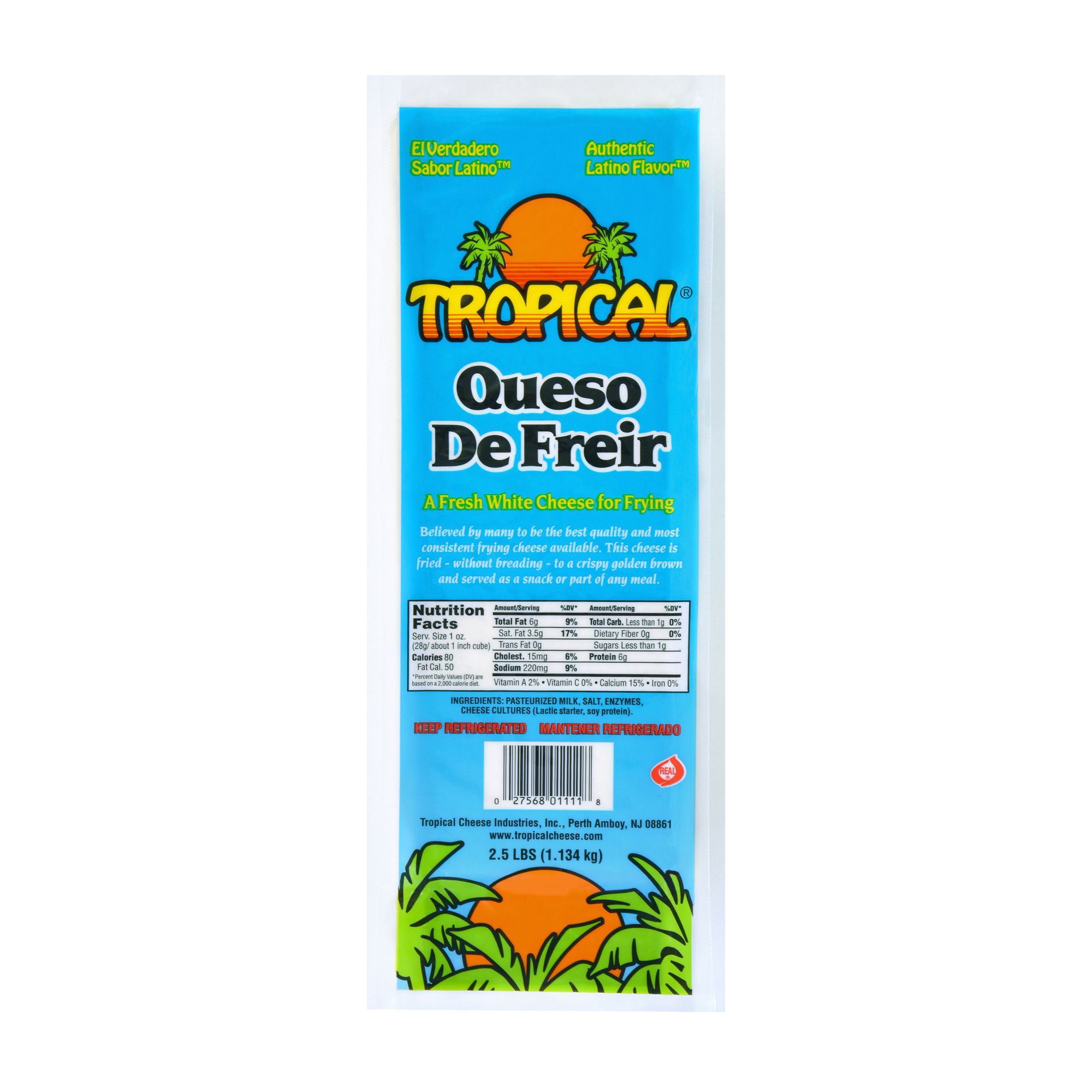2.5 lbs. Low carb snack Gluten free Fries to a crispy, golden brown – no breading is necessary Holds shape when heated without melting Product of USA Includes 2.5 lbs. Tropical Queso De Freir
