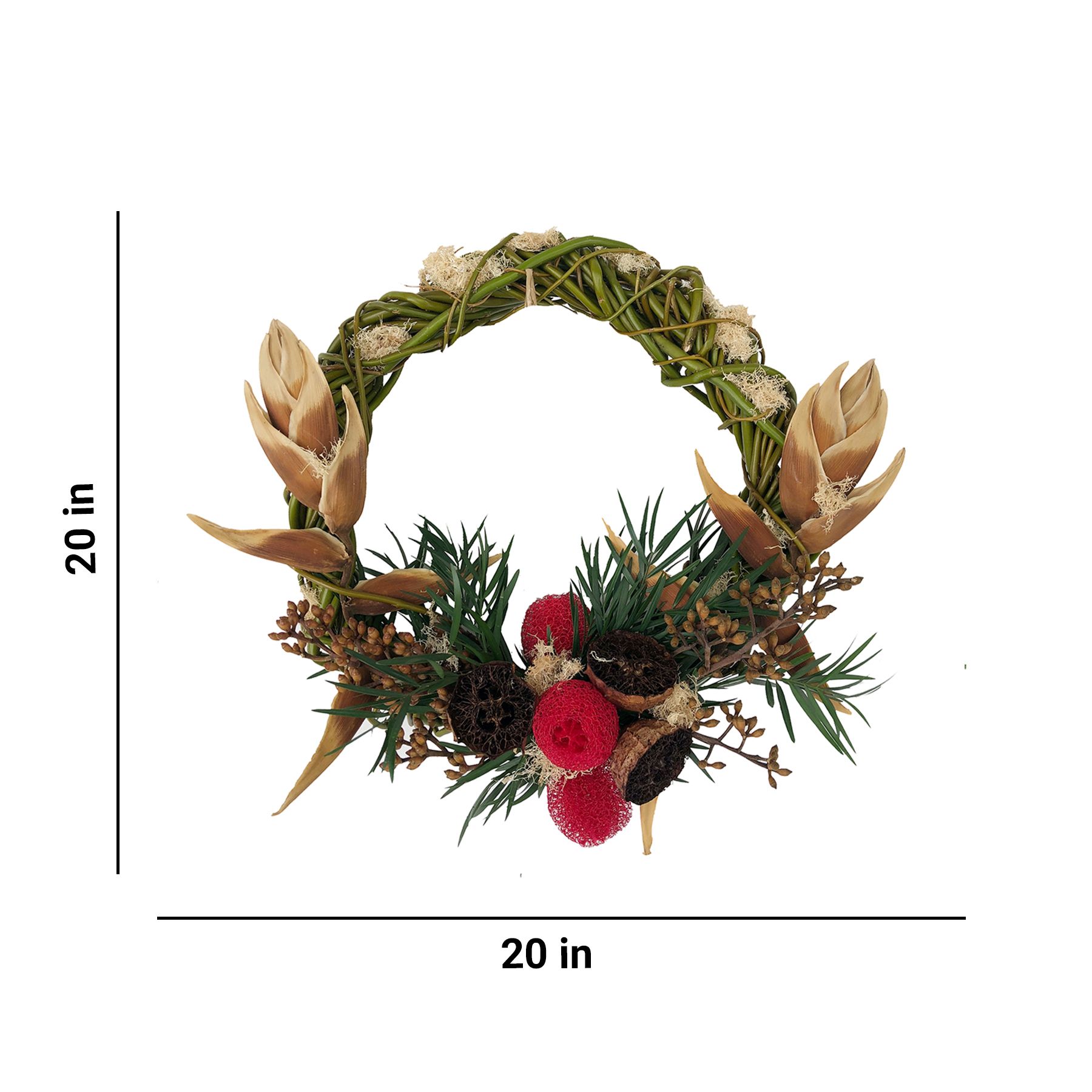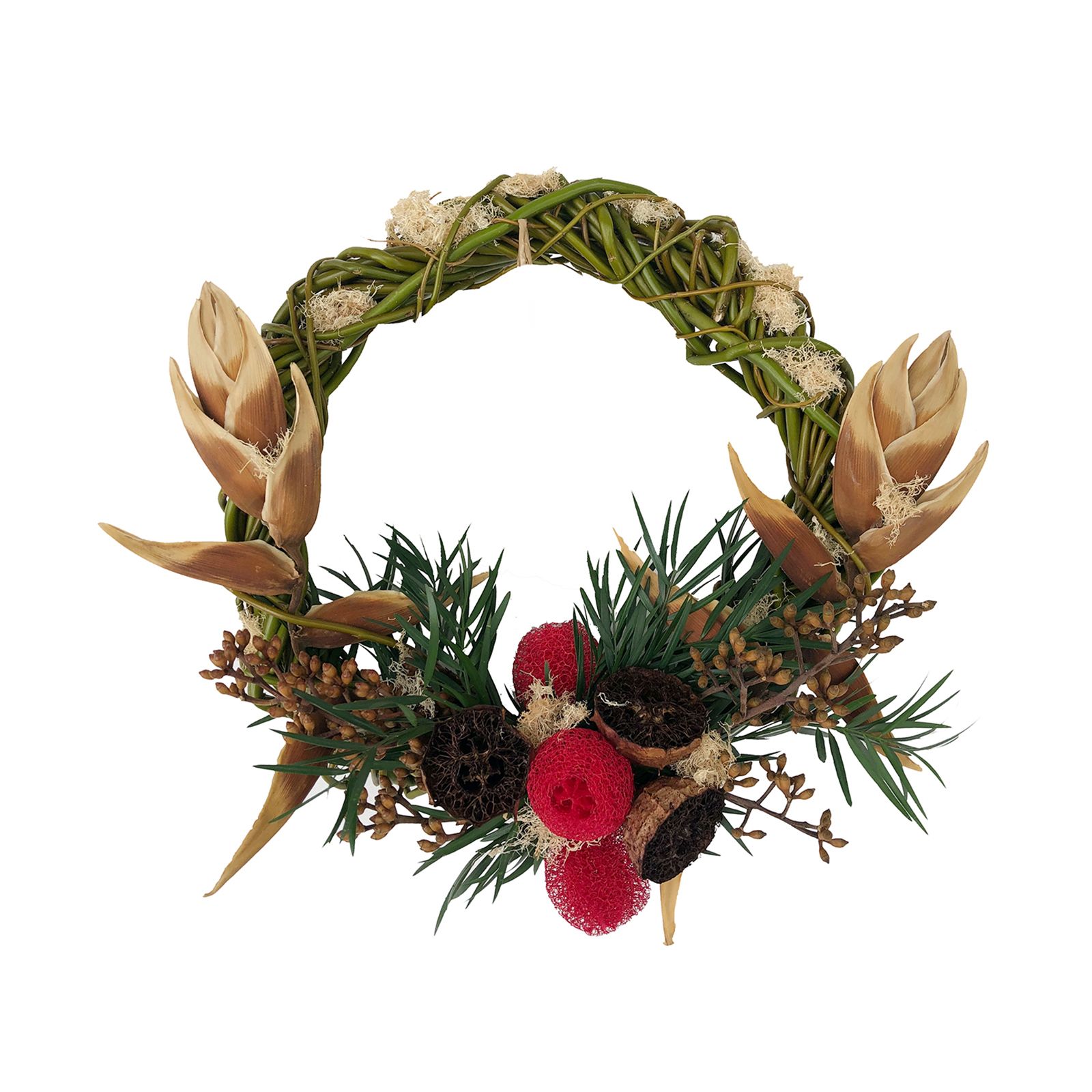 Bring that tropical touch of sun to your Christmas decor with the Tropical Reindeer Wreath. The dry ginger, red loofahs, lotus pods, and mixed greenery will be a festive addition to your holiday decor or make a perfect gift for a loved one.