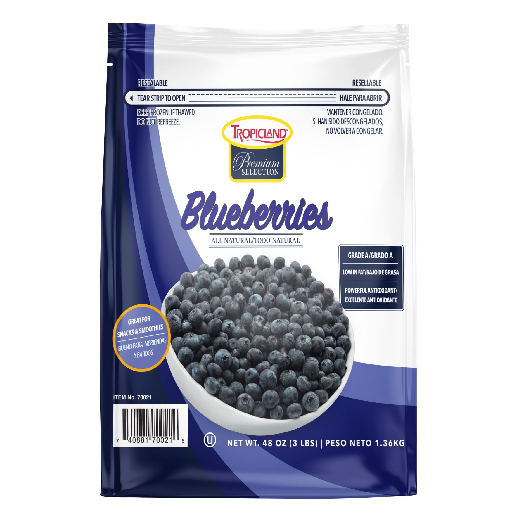 Includes frozen blueberries, 3 lbs.