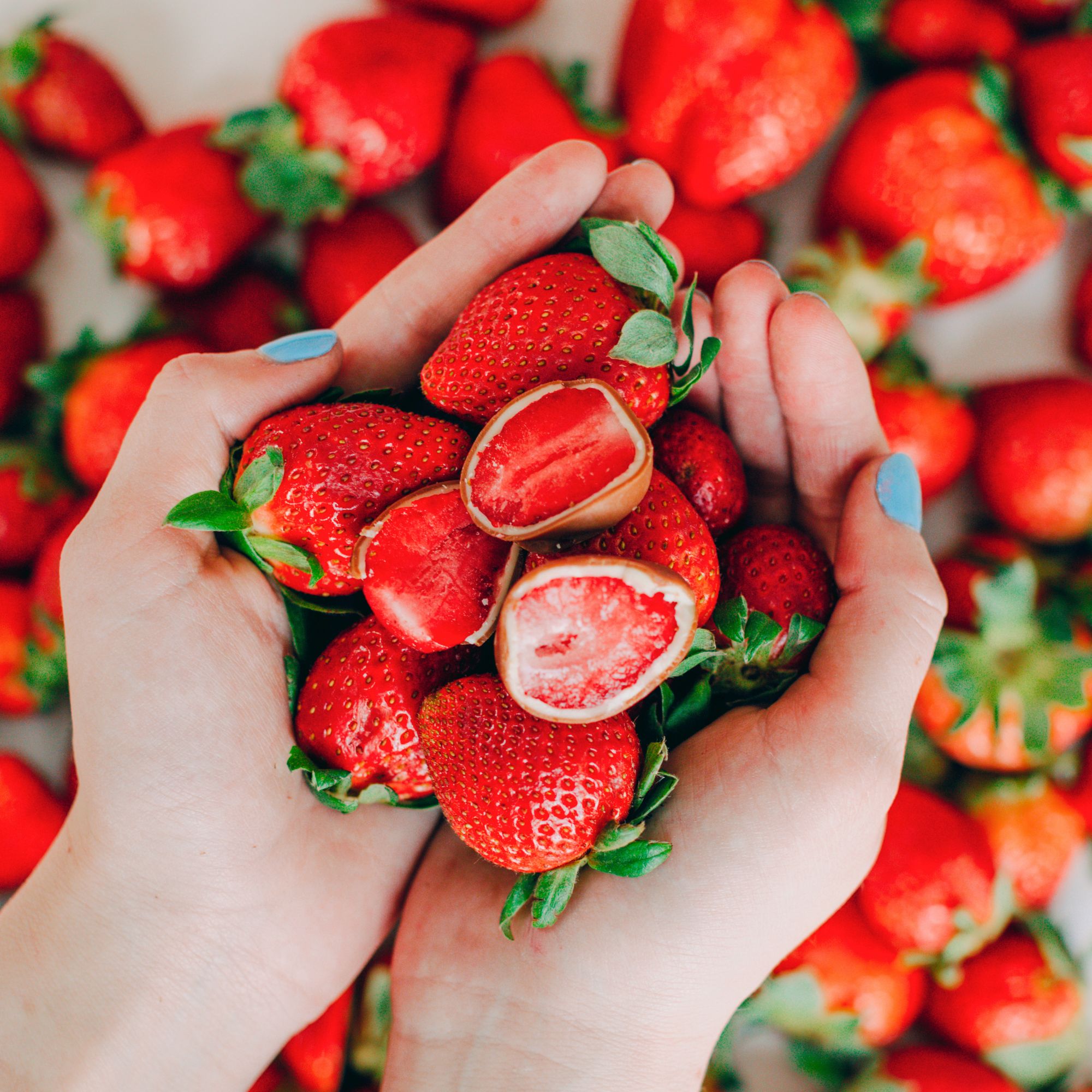 Includes frozen strawberries with milk and white chocolate, 20 oz.