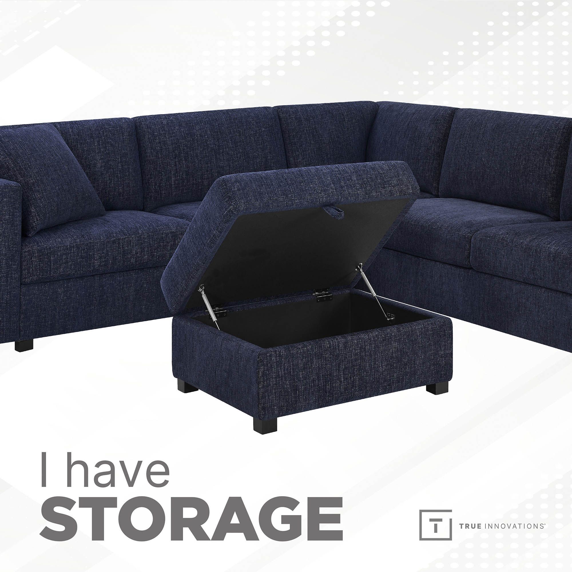 True Innovations 3-Pc. Sectional with Storage Ottoman – Navy