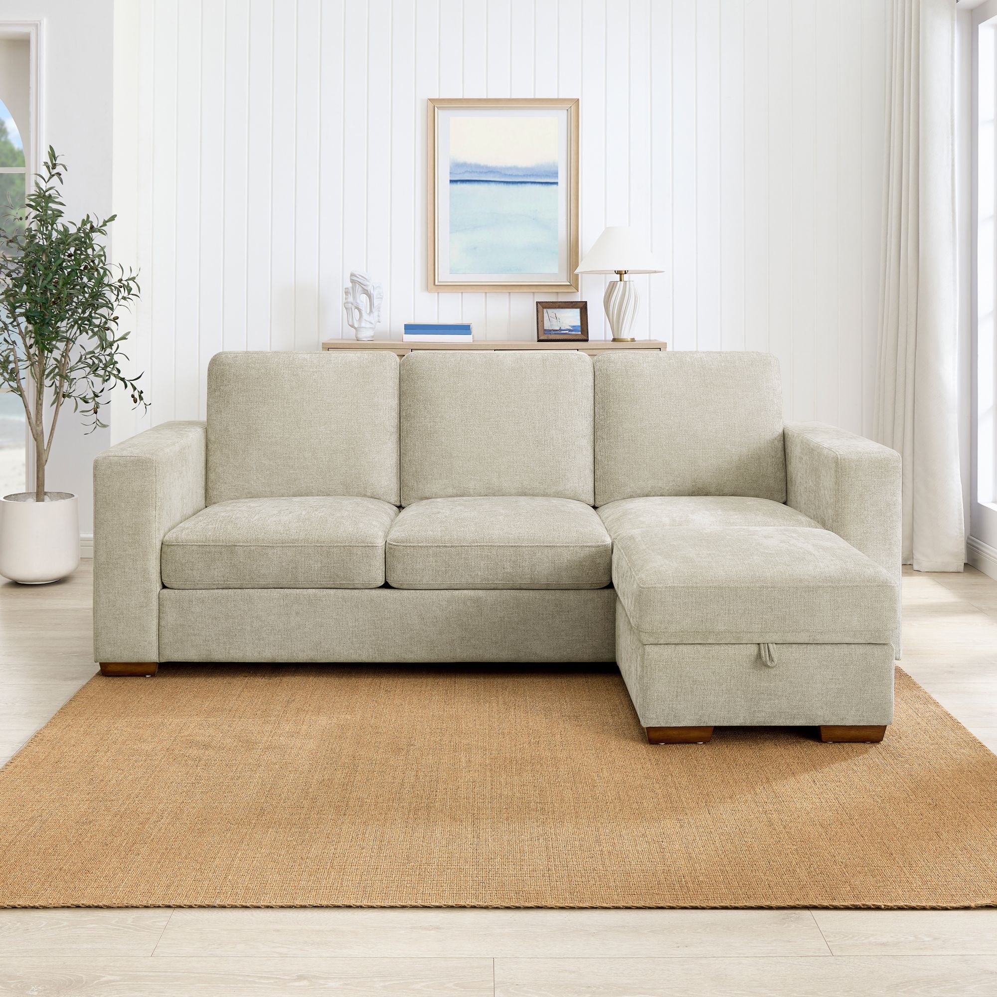 (30 Items)True Innovations Bancroft Fabric Track Arm Sofa with Storage Ottoman