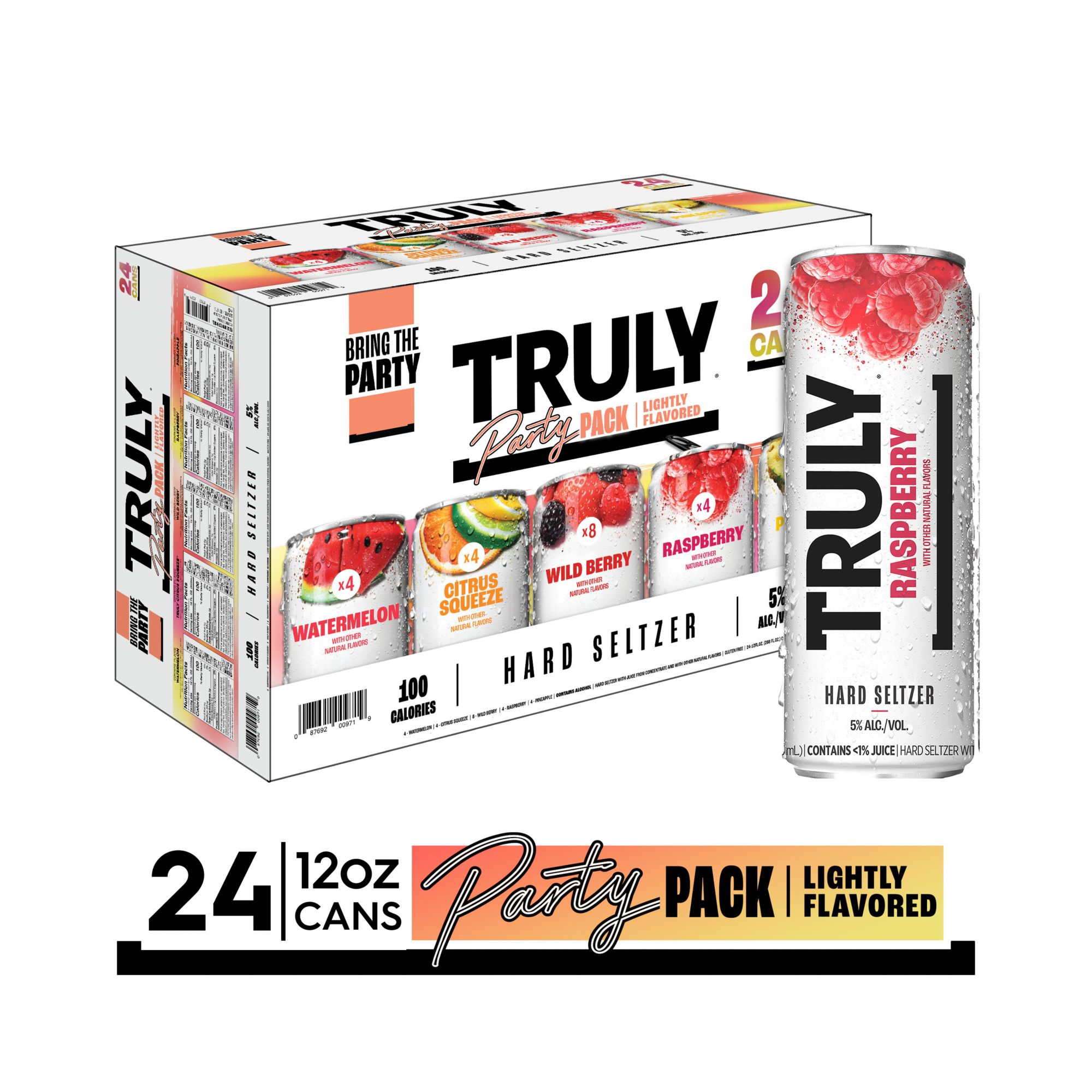 Introducing the new! Truly Party Pack - a new variety pack that combines all their most popular flavors into one convenient 24 pack. Truly knows how tough it is to buy alcohol for a crowd, so Truly just made your job a whole lot easier. This brand-new variety pack features classic, fan-favorite flavors: Wild Berry, Watermelon, Citrus Squeeze, Pineapple and new Raspberry! With a flavor for everyone, the Truly Party Pack takes the second guessing out of your shopping trip. Pick up this exciting new mix pack for your friends and family and get the party started. Each 12 ounce can has 100 calories, 5% ABV and 1g sugars for refreshment that won’t weigh you down. Variety 24 pack, 12 fluid ounce cans.