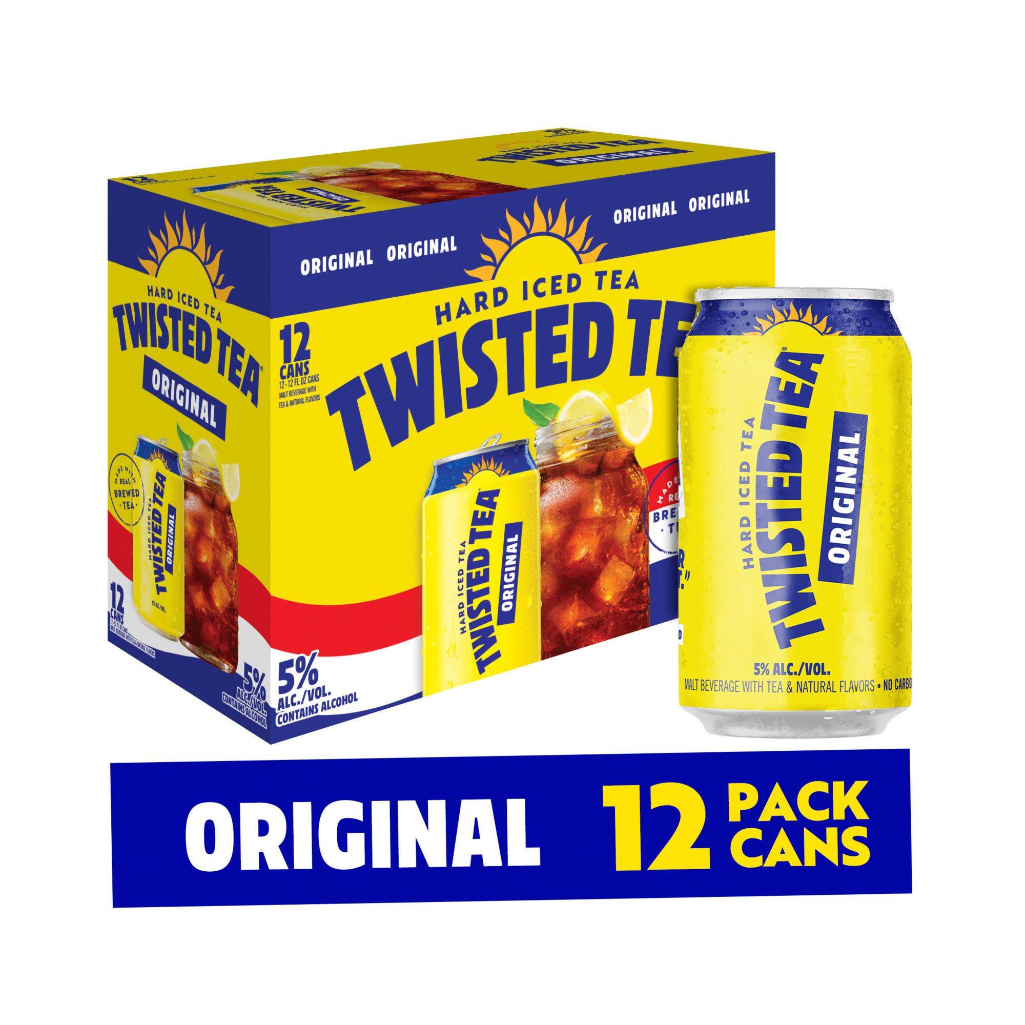 Twisted Tea Original is refreshingly smooth hard iced tea made with real brewed black tea and a twist of natural lemon flavor. Non-carbonated, naturally sweetened, and 5% ABV – it’s your favorite iced tea with a classic twist. Keep it Twisted.