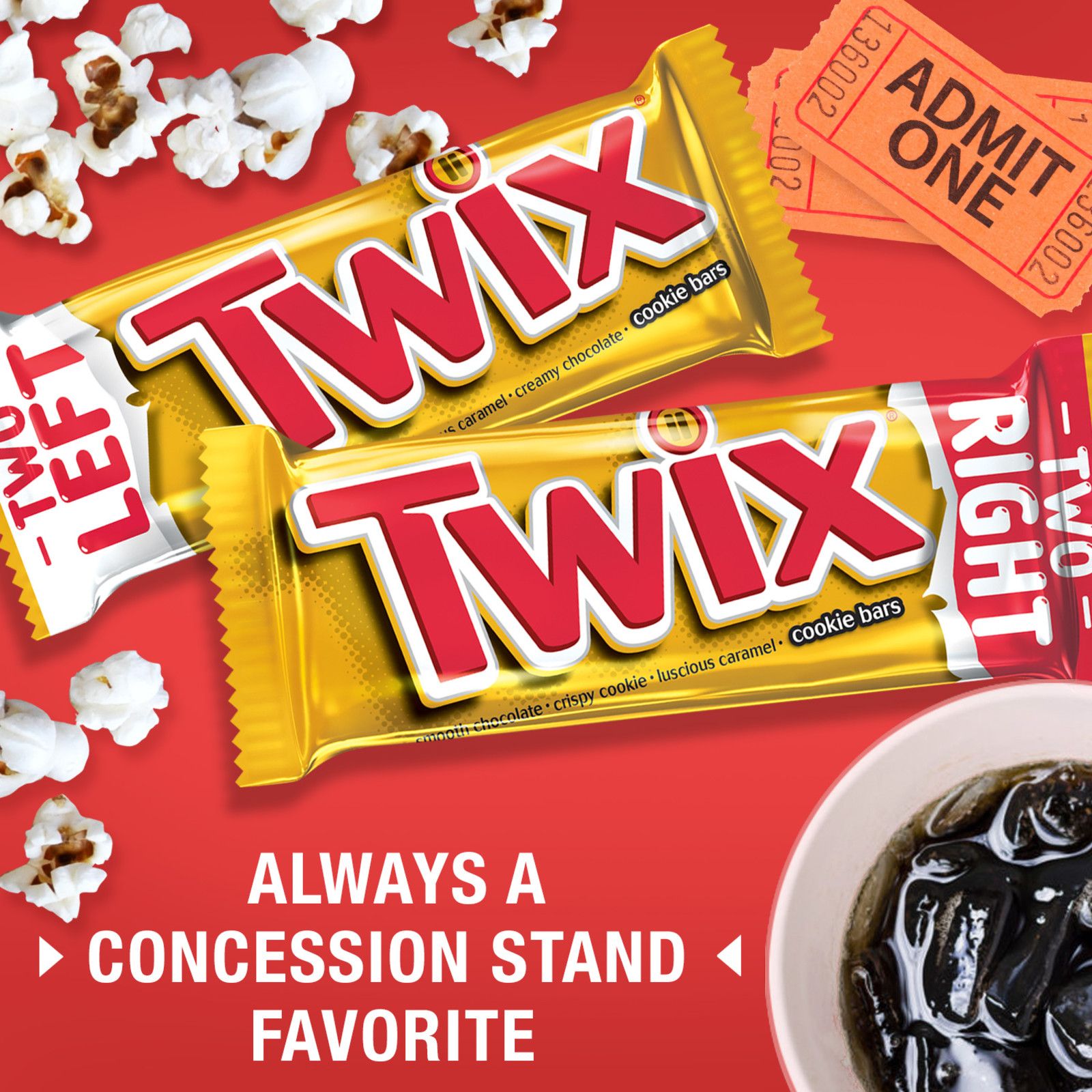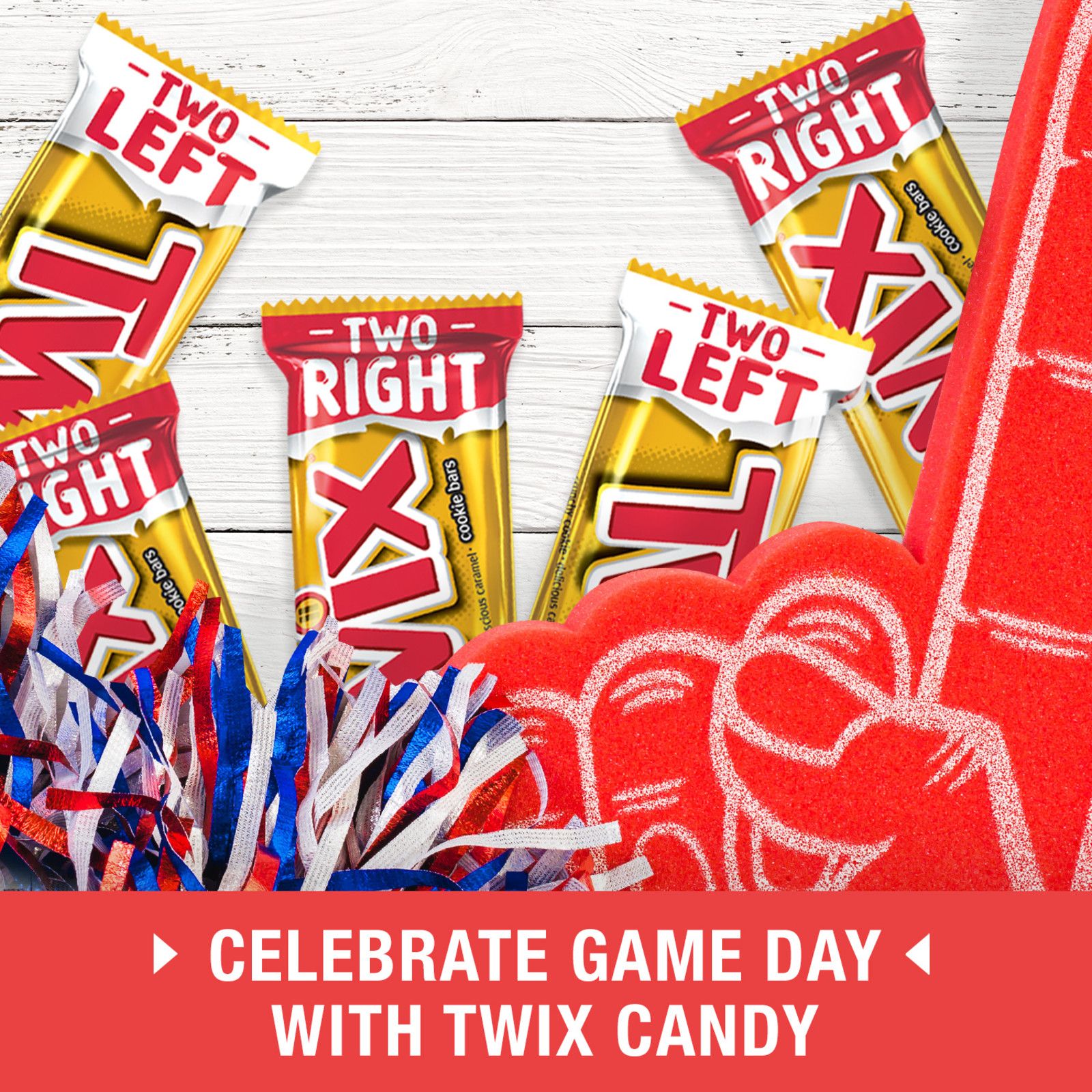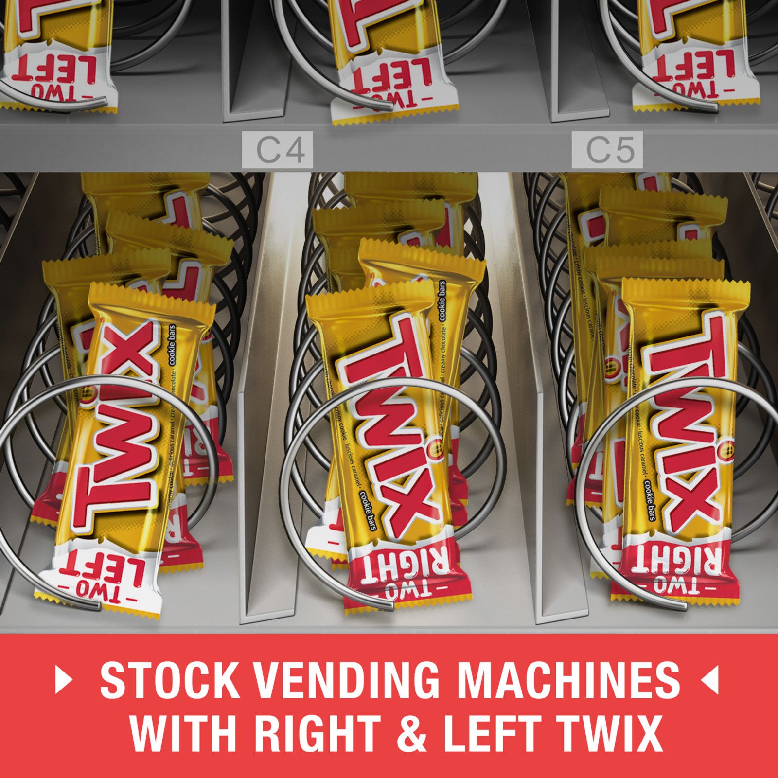 This bulk chocolate candy box includes 36 individually wrapped Full Size Twix chocolate candy bars. Right Twix is an amazing pairing of smooth chocolate, crispy cookie, and luscious caramel. Left Twix is an awesome combination of crunchy cookie, delicious caramel, and creamy chocolate. Try both and pick a side, everyone has one. This 36-count box of Twix Full Size individually wrapped candy bars gives you plenty of opportunities to decide. Either way, Twix believes a little bit of joy makes a big difference to your day. Individually wrapped bulk Full Size candy bars are ideal for keeping the pantry stocked for movie night with the family and small celebrations with friends. These caramel cookie filled candy bars make great to-go treats, pack them in lunches, or take them along on family road trips to enjoy caramel chocolate candy on the road. Bulk Twix candy bars are a tasty way to share your love of chocolate candy with friends and family. Buying candy bars in bulk ensures you have plenty of chocolate on hand for filling candy bags and candy gift baskets. Be the best house on the block this Halloween when you hand out Full Size Twix chocolate Halloween candy to Trick-or-Treaters. Full Size candy bars make great stocking stuffer candy gifts and Easter basket candy. Twix Full Size chocolate candy bars turn break time into bliss. Our tip: take your coffee with a Twix bar! Amp up your midday recharge with every bite of gooey caramel and crunchy cookie cloaked in delicious, flowing chocolate. This 36-count bulk candy package is great for stocking vending machines, concession stands, and even the office pantry. There are endless ways to share and enjoy a moment with Twix bulk candy.