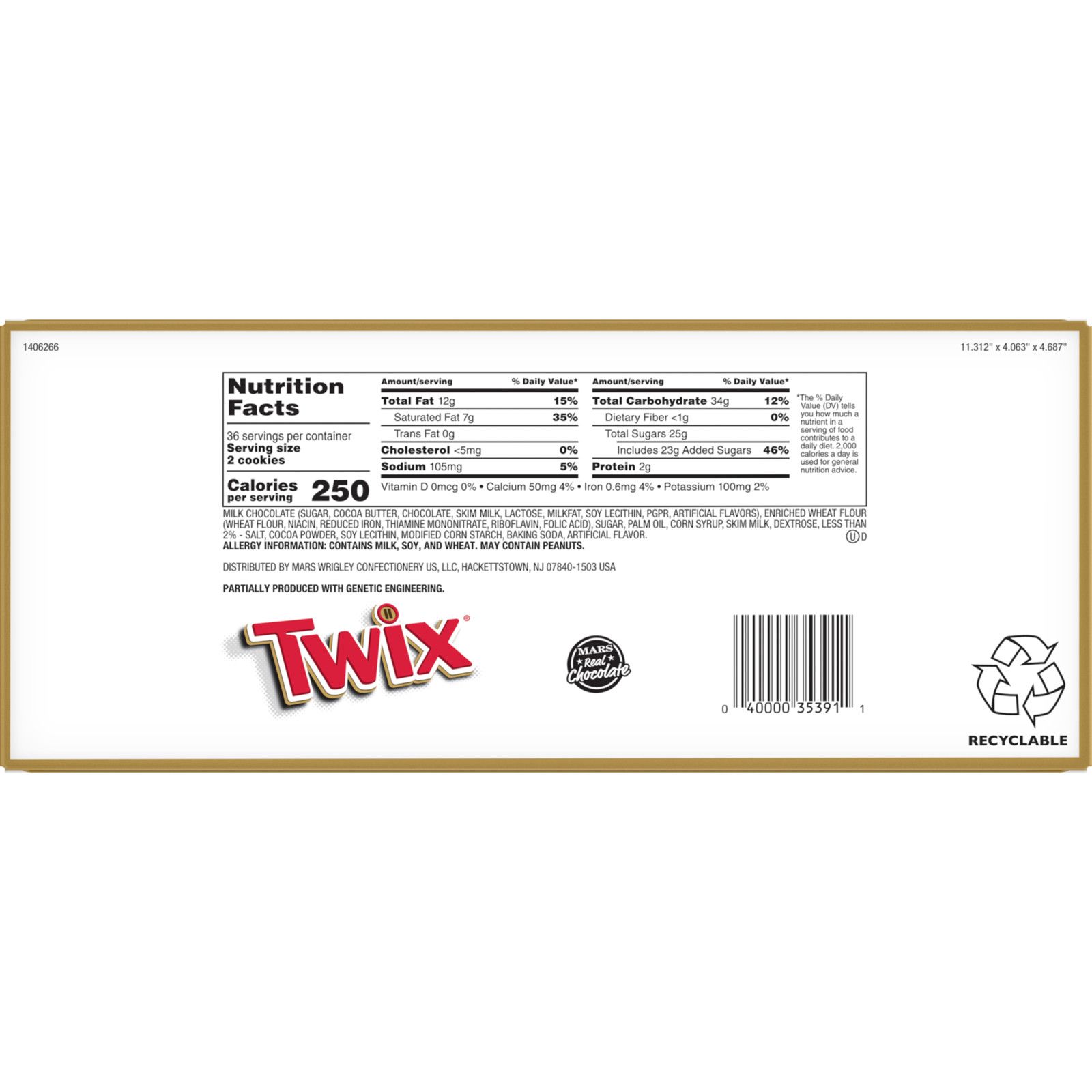 Contains one (1) 64.44-ounce, 36-count bulk candy box of 19 Twix Chocolate Candy Bars