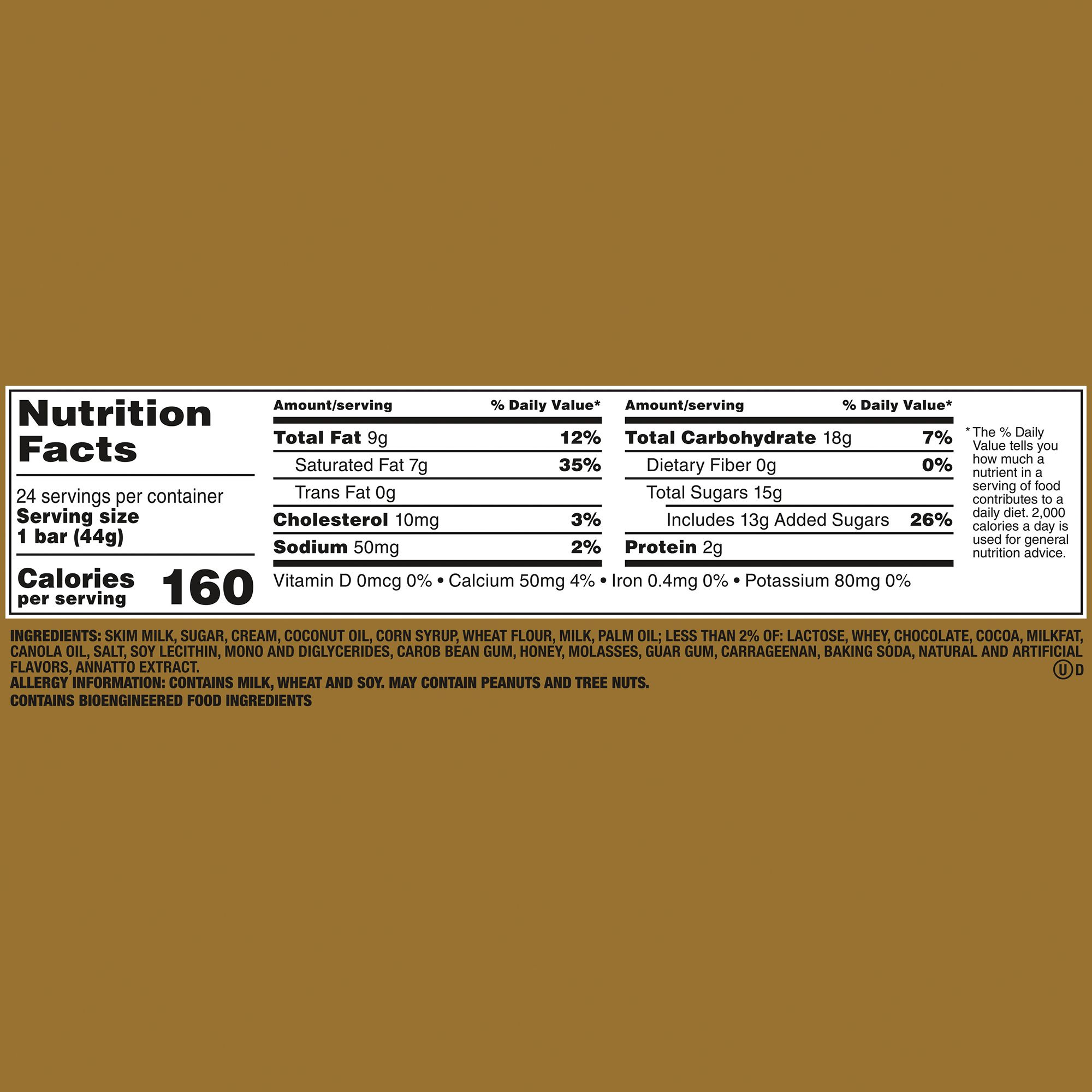 Ingredients: Skim Milk, Sugar, Cream, Coconut Oil, Corn Syrup, Wheat Flour, Milk, Palm Oil; Less Than 2% Of: Lactose, Whey, Chocolate, Cocoa, Milkfat, Canola Oil, Salt, Soy Lecithin, Mono And Diglycerides, Carob Bean Gum, Honey, Molasses, Guar Gum, Carrageenan, Baking Soda, Natural And Artificial Flavors, Annatto Extract.