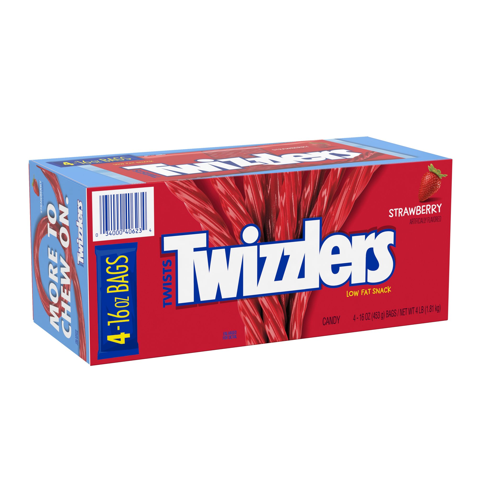 Contains four (4) 16-ounce bags of Twizzlers Twists Strawberry Flavored Licorice Style Chewy Candy in a box