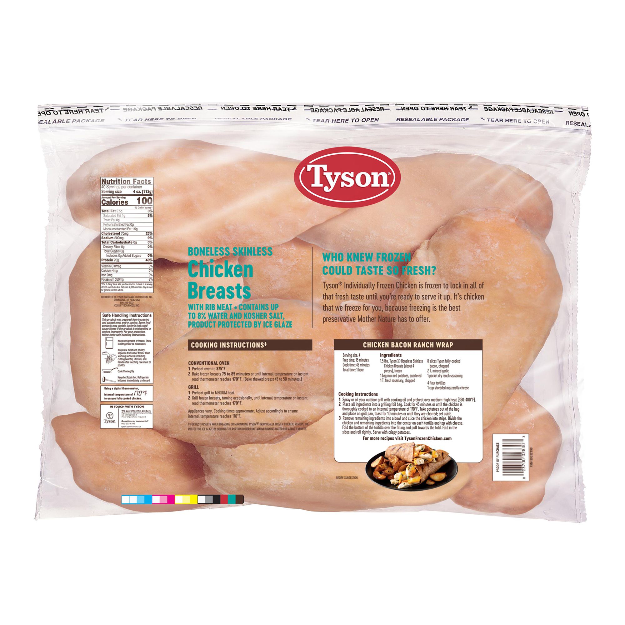 There's nothing like cooking from scratch, especially when you start with Tyson Individually Frozen Boneless Skinless Chicken Breasts. Tyson's all-natural* chicken is juicy and tender with 20 grams of protein and 0 grams of trans fat per serving. Perfect for grilling and roasting, simply cook and serve these boneless chicken breasts with BBQ sauce for a quick and delicious weeknight dinner. Includes one 10 lb. package of individually frozen chicken. Everything seems to turn out a whole lot better when you just keep it simple. No nonsense. Just stick to the good stuff. The 100% real stuff that makes life, and chicken, great. Keep it real. Keep it Tyson.