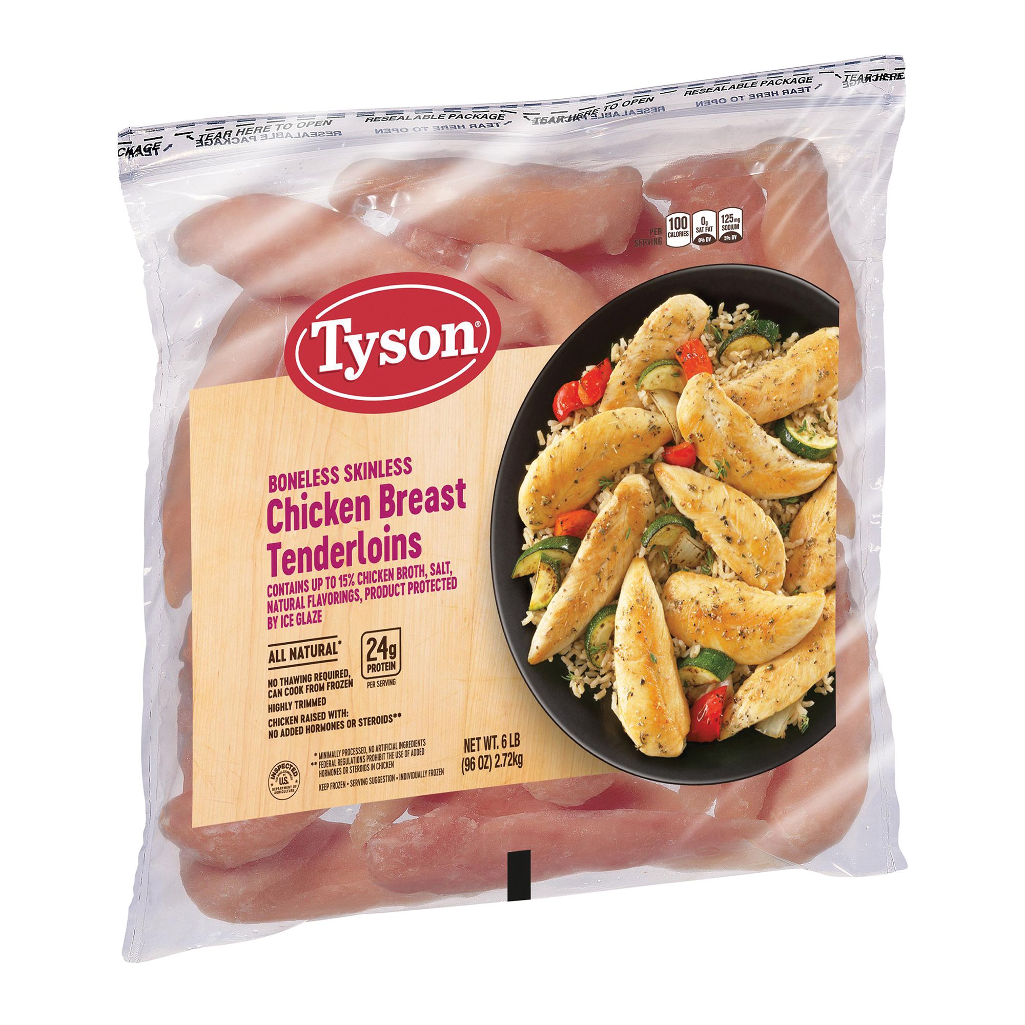 Includes individually frozen boneless skinless chicken breast tenderloins, 6 lbs.