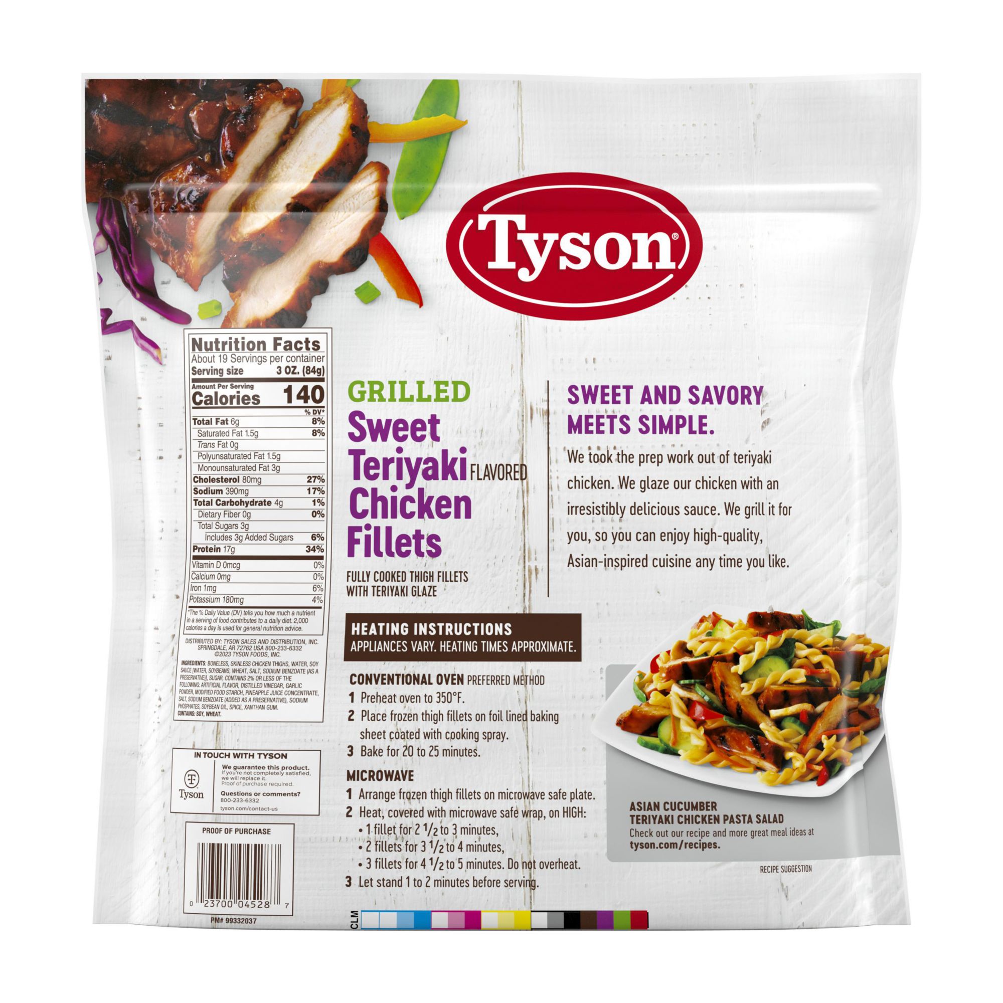 Weeknight dinner just got easier with Tyson Frozen Grilled Sweet Teriyaki Flavored Chicken Fillets. Simply heat and serve these chicken fillets with teriyaki sauce and sauteed vegetables for a quick and delicious weeknight dinner. Includes one 3.5 lb. package. Everything seems to turn out a whole lot better when you just keep it simple. No nonsense. Just stick to the good stuff that makes life and chicken, great. With high quality farm raised chicken, Tyson keeps it real in everything they do.