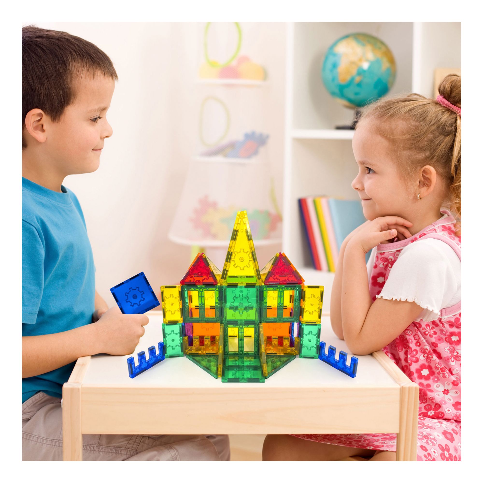 With 230 tiles of various shapes and sizes, kids can build anything their mind imagines through innovative play. With a simple click, these magnetic learning tiles can bring to life 1000s of different creations and dreams. This amazing set features a wide variety of striking colors and shapes including triangles, squares, rectangles and more. Tiles can be crafted into large 3D buildings, castles, and various vehicles. Children will get to explore their imagination and fine-tune their motor skills. This award-winning set is certified by STEM.org as an educational tool to help develop STEM (Science, Technology, Engineering, and Mathematics) skills. Kids will get work with shapes, pattern recognition, magnetic principles, and architectural building. The 230-piece kit from Tytan Tiles is made from environmentally friendly materials, is parent-tested, and has the highest level of CPSA child safety certifications.