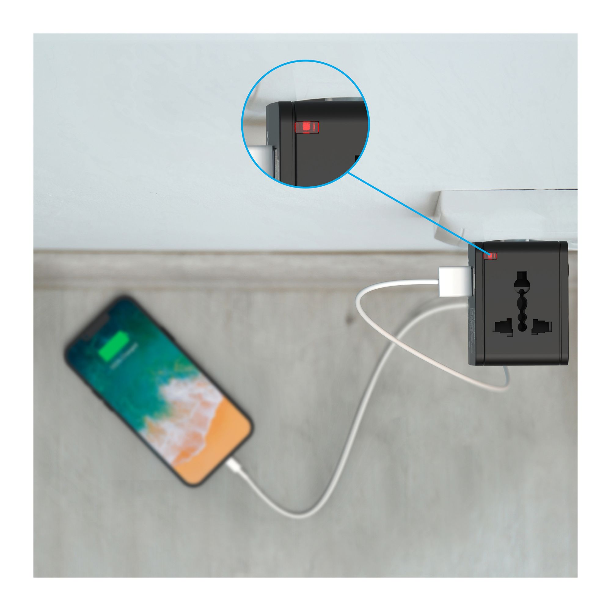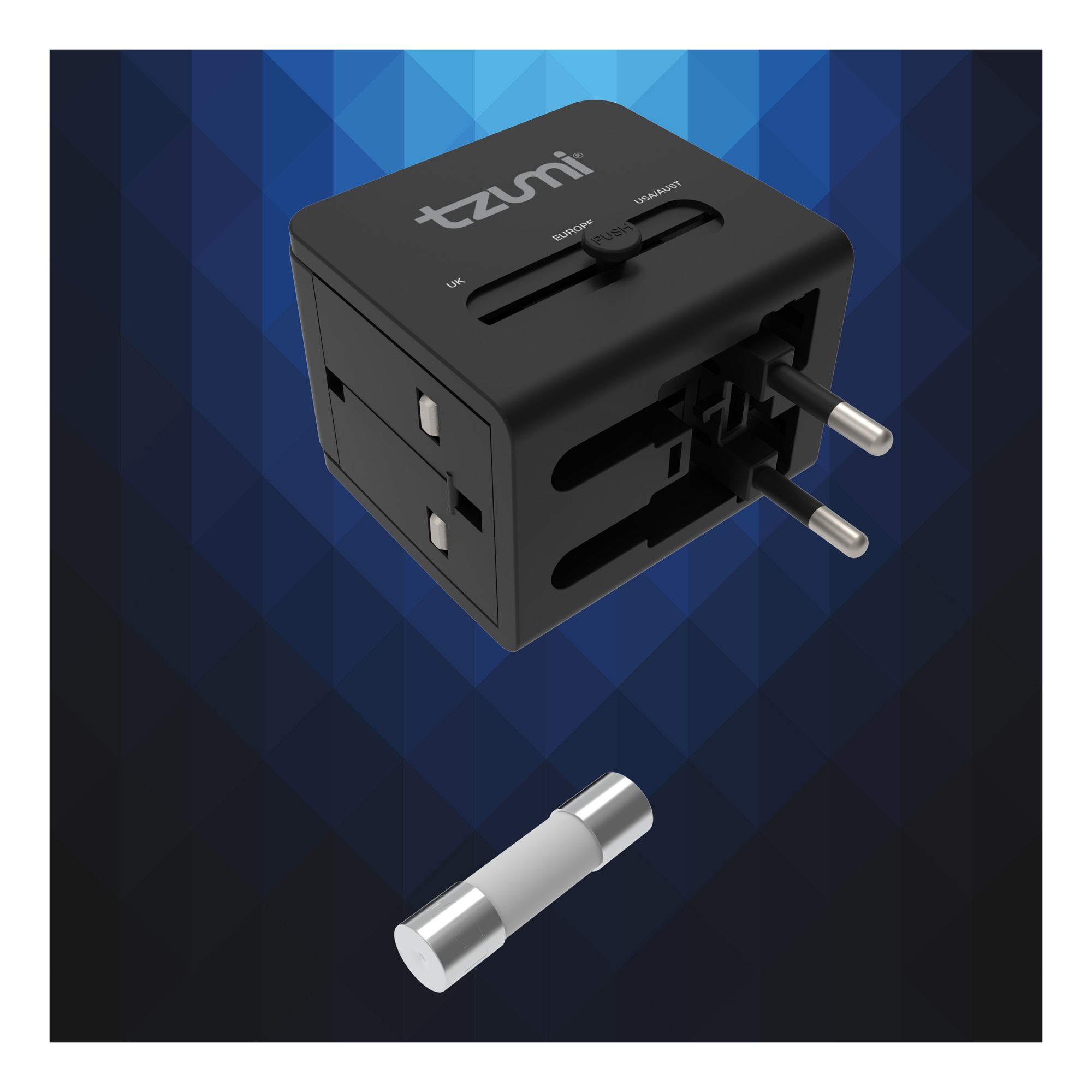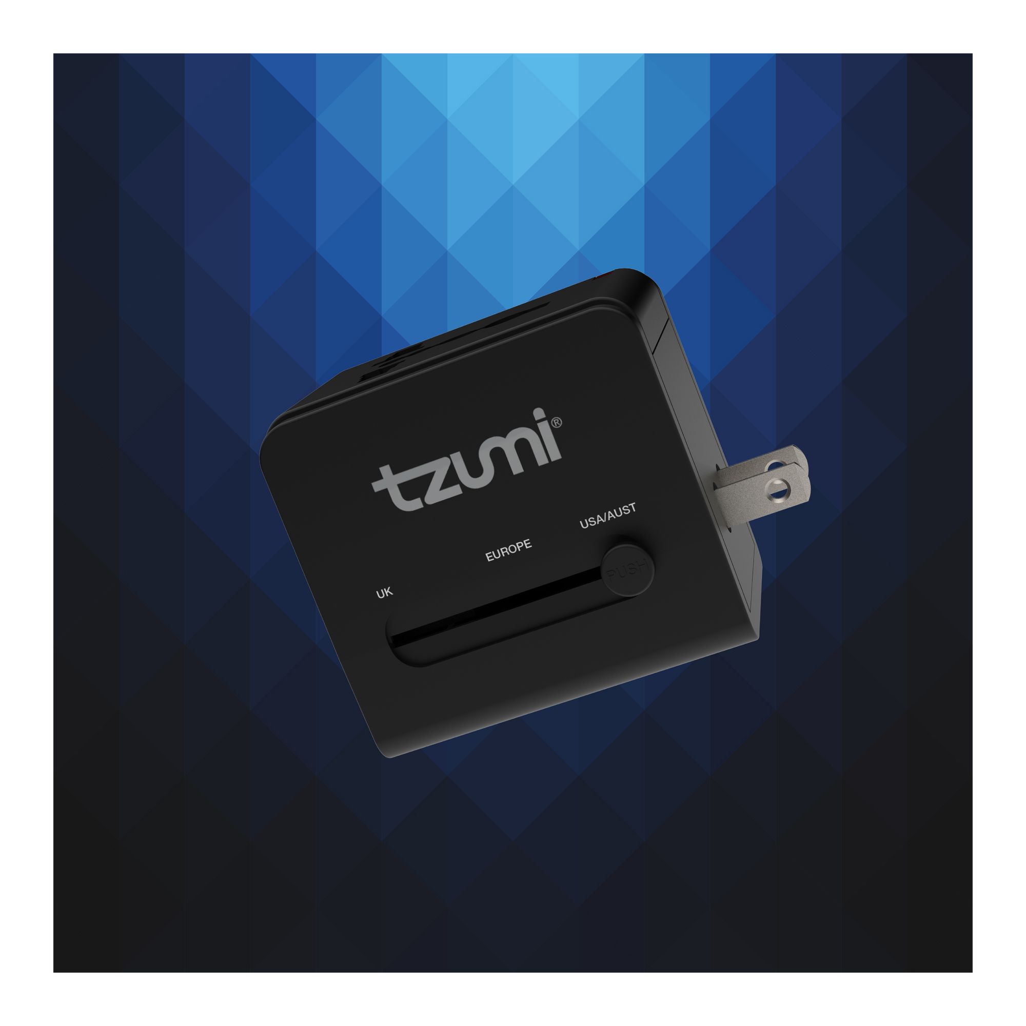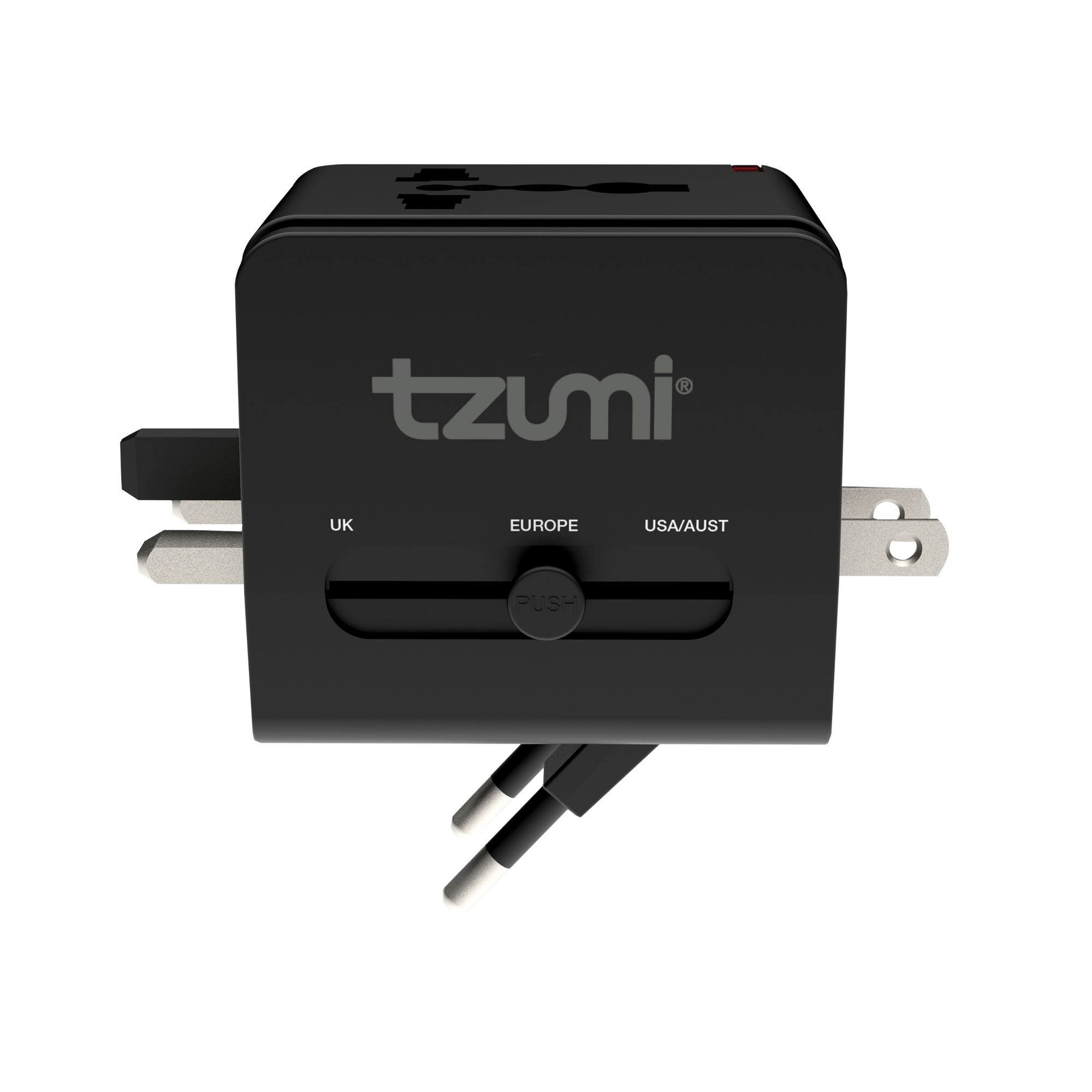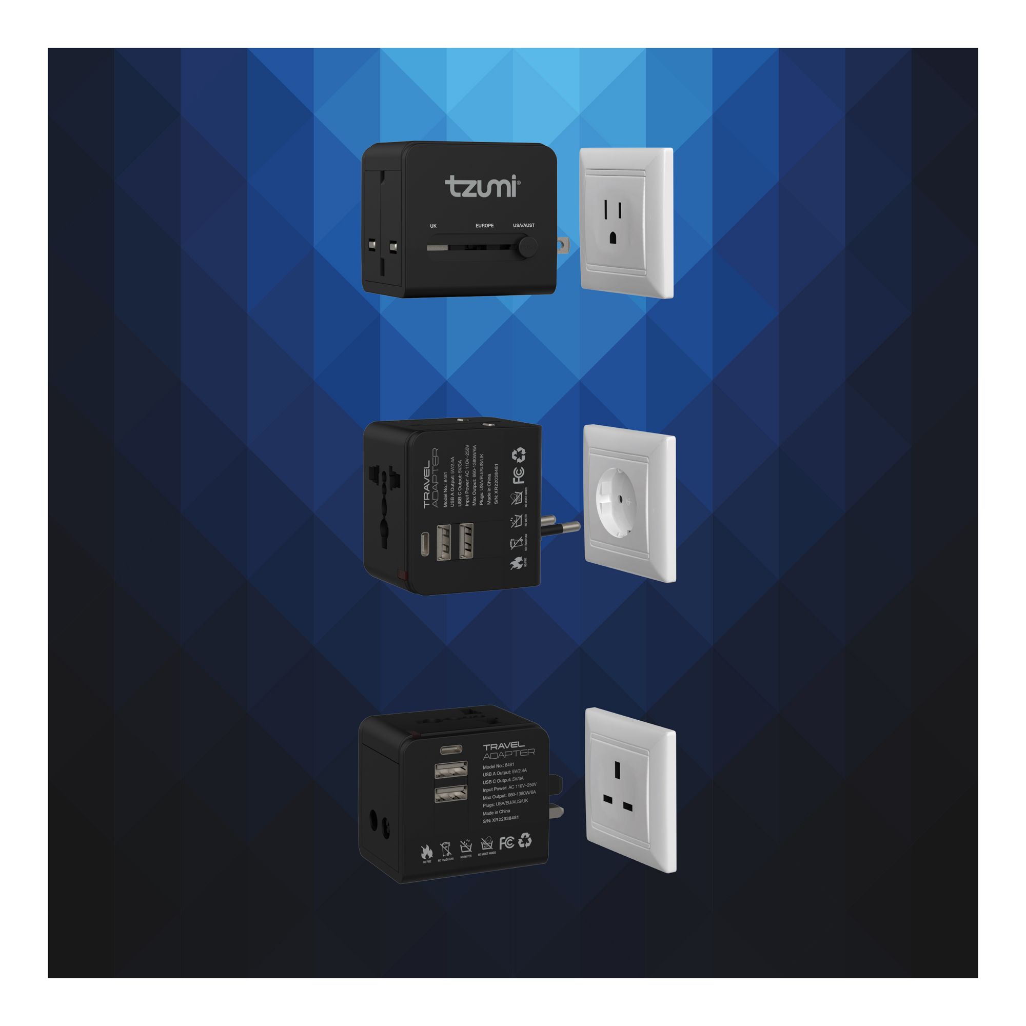 Tzumi Universal Travel Adapter with USB-C and Dual USB-A Ports - Black