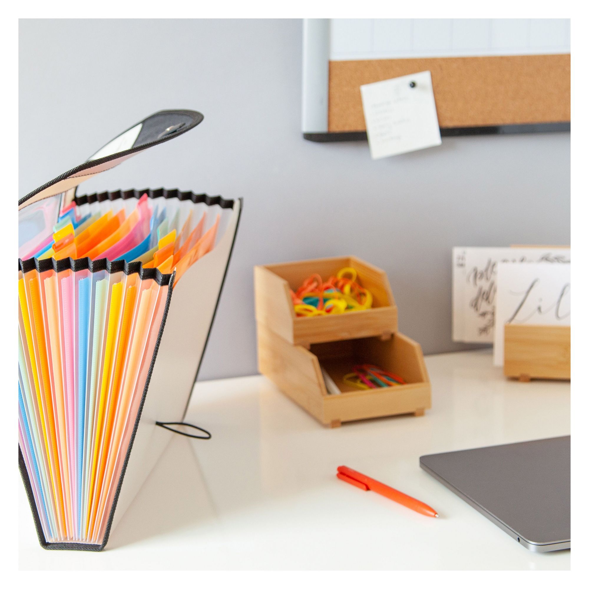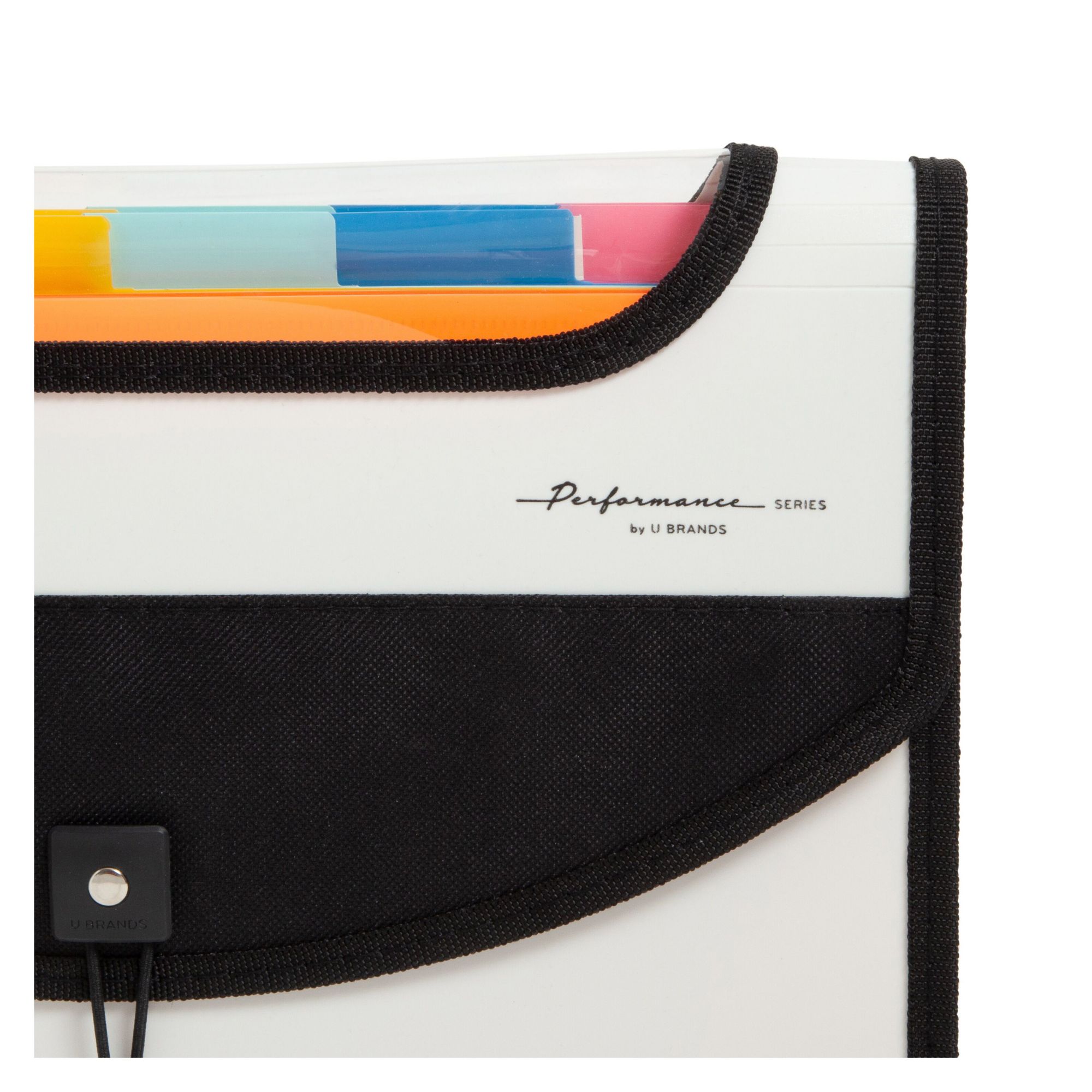 Being organized doesn’t mean having to use boring cookie-cutter office supplies. Create a new system that keeps your life running smoothly with an expandable 13-pocket poly performance file folder. The durable, charcoal exterior evokes a sense of preparedness and professionalism. 13 expanding pockets allow you to organize your letter-size papers by type so you can easily locate everything from work projects to family records and school assignments. A convenient translucent ‘Clear View’ window on the top of the folder makes it easy to quickly glance at the folder’s contents. Its durability and secure loop and button closure keep documents safe while you're on the move. Whether you're a student on the way to a lecture, a businesswoman commuting to work, or a remote employee looking to spruce up your home office, this folder is the perfect solution. U Brands is a dynamic company focused on a complete and diverse line of stationery, office and home goods. U Brands is developing some of the most unique and inspiring stationery and home office products and pledges to deliver innovative and creative designs with great quality and value.