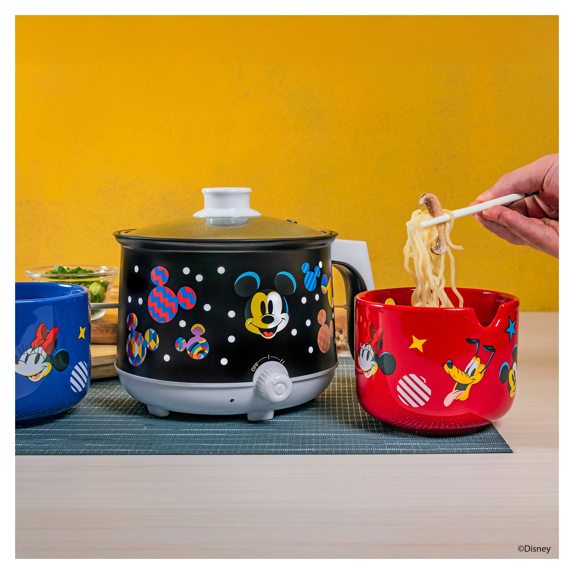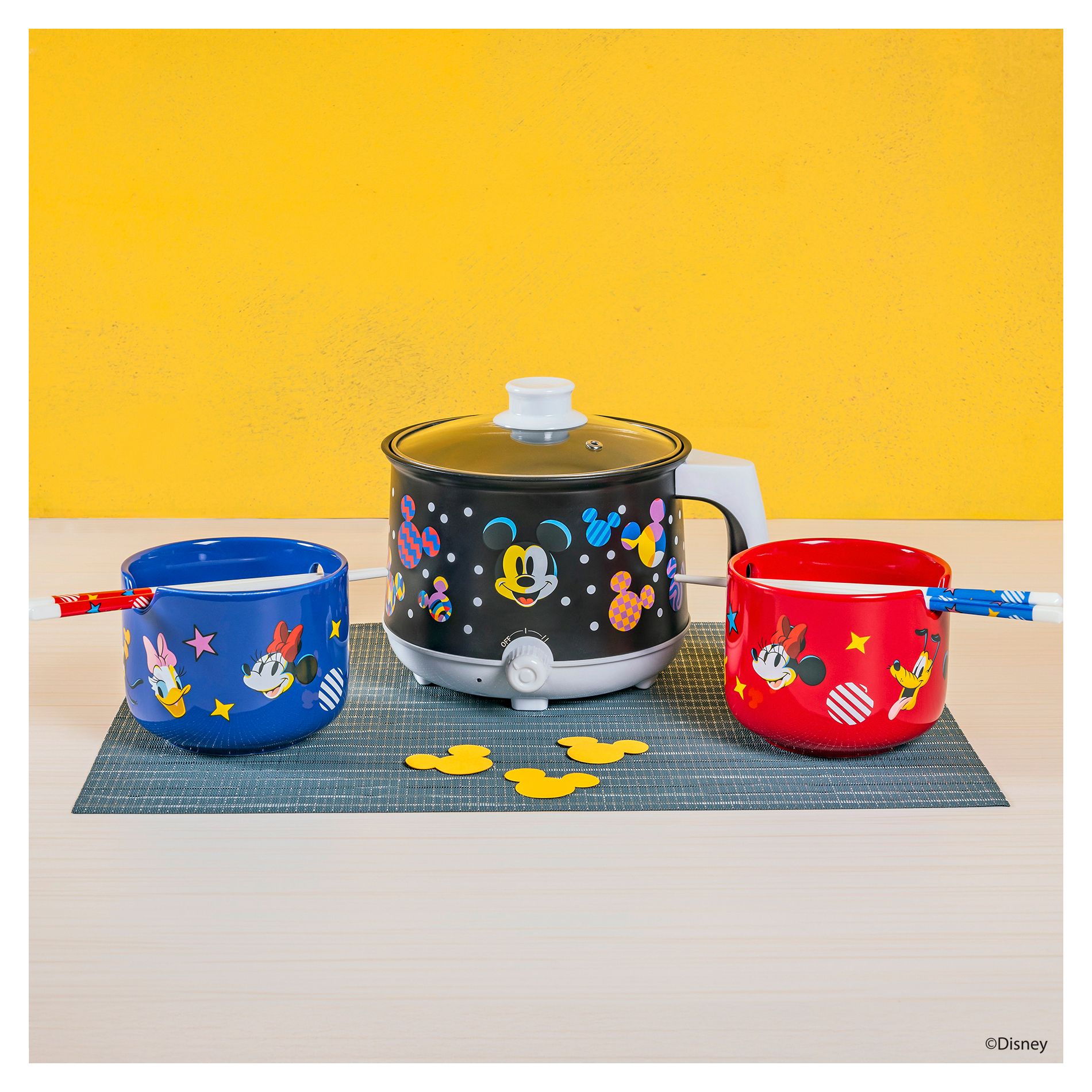 Uncanny Brands Disney Mickey Mouse Hot Pot with Ramen Bowls