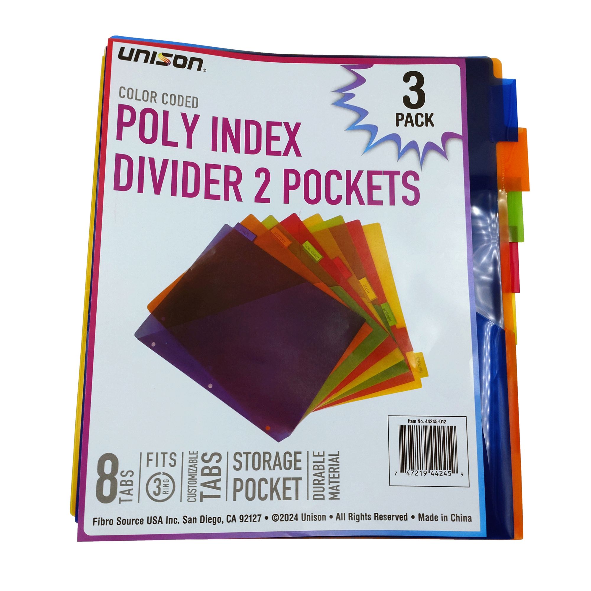 Unison Poly Dividers 8 Tab, 3 pk.