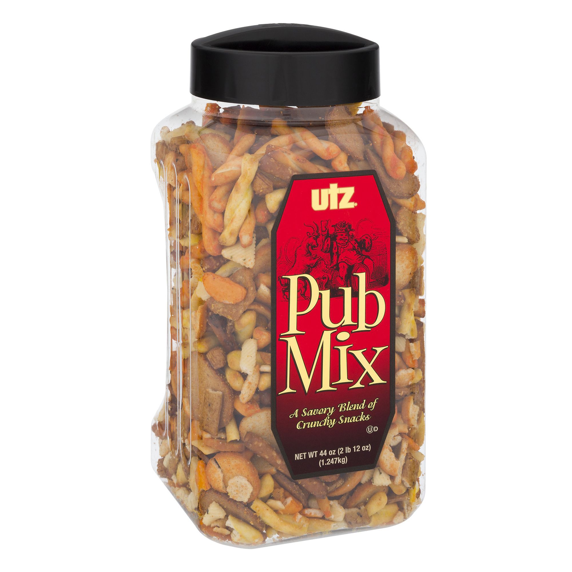 The combination of yummy flavors makes this the perfect party snack mix The Utz Pub Mix comes in a convenient resealable plastic barrel so you can buy in bulk and snack as you please Just twist the cap back on tightly to maintain freshness Enjoy this delicious snack mix without any of the guilt