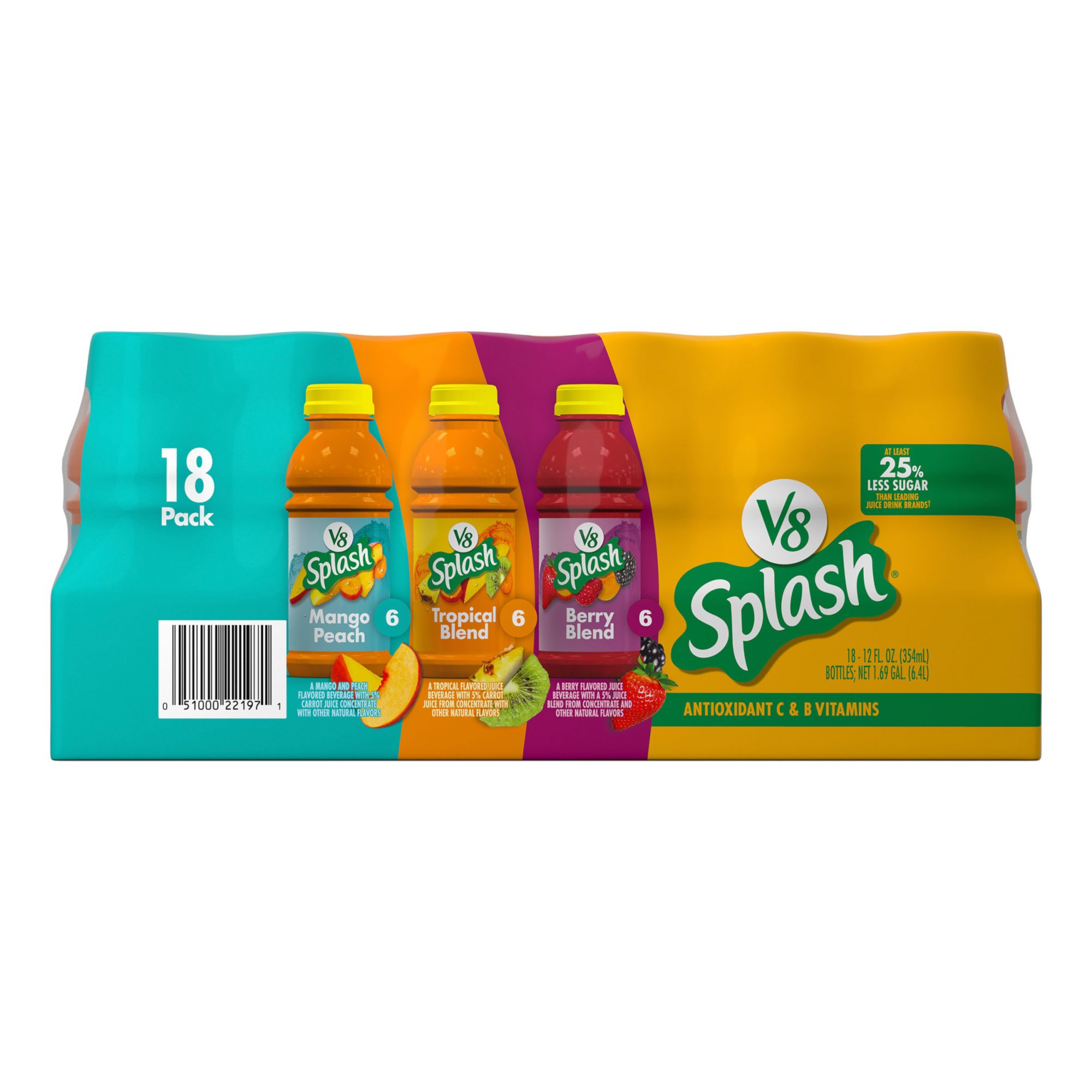V8 Splash Berry Blend, Tropical Blend & Mango Peach Flavored Juice Beverages, Bottles, 18 pk./12 fl. oz.