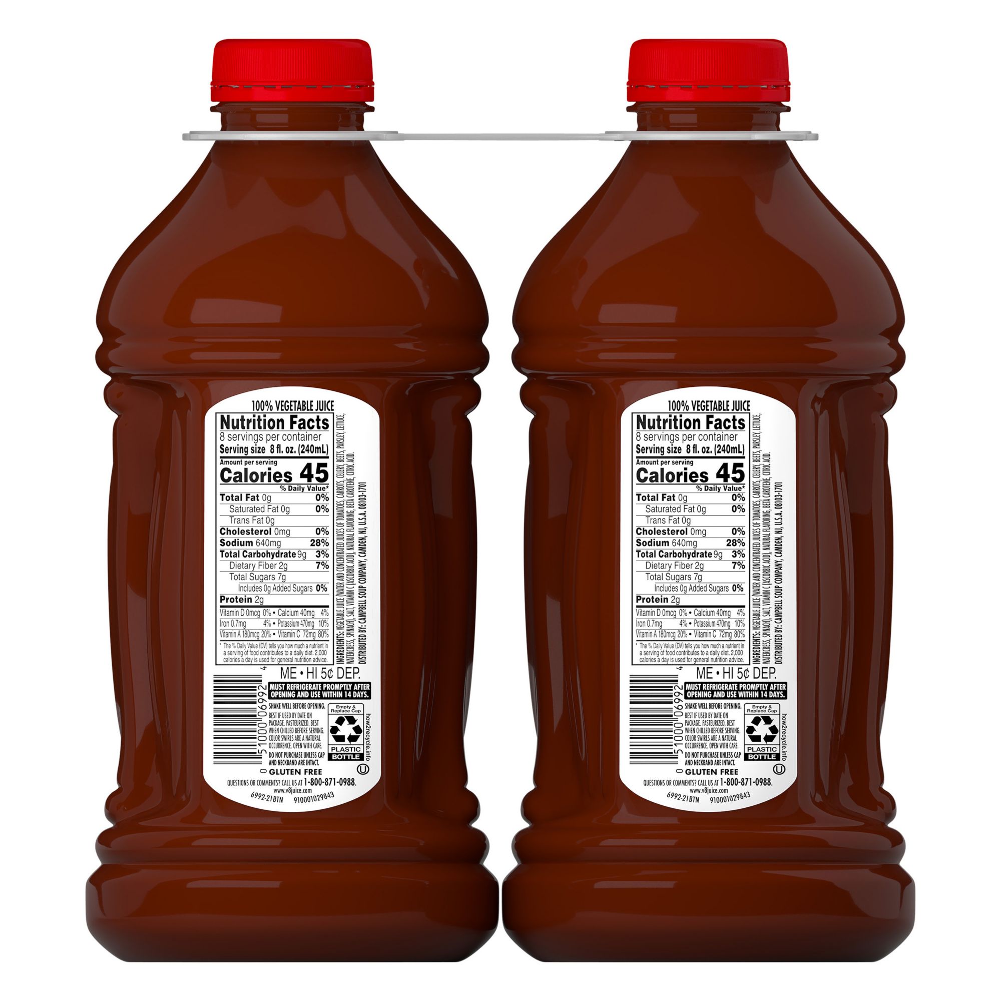 Two (2) 64 fl. oz. bottles of V8 original 100% vegetable juice