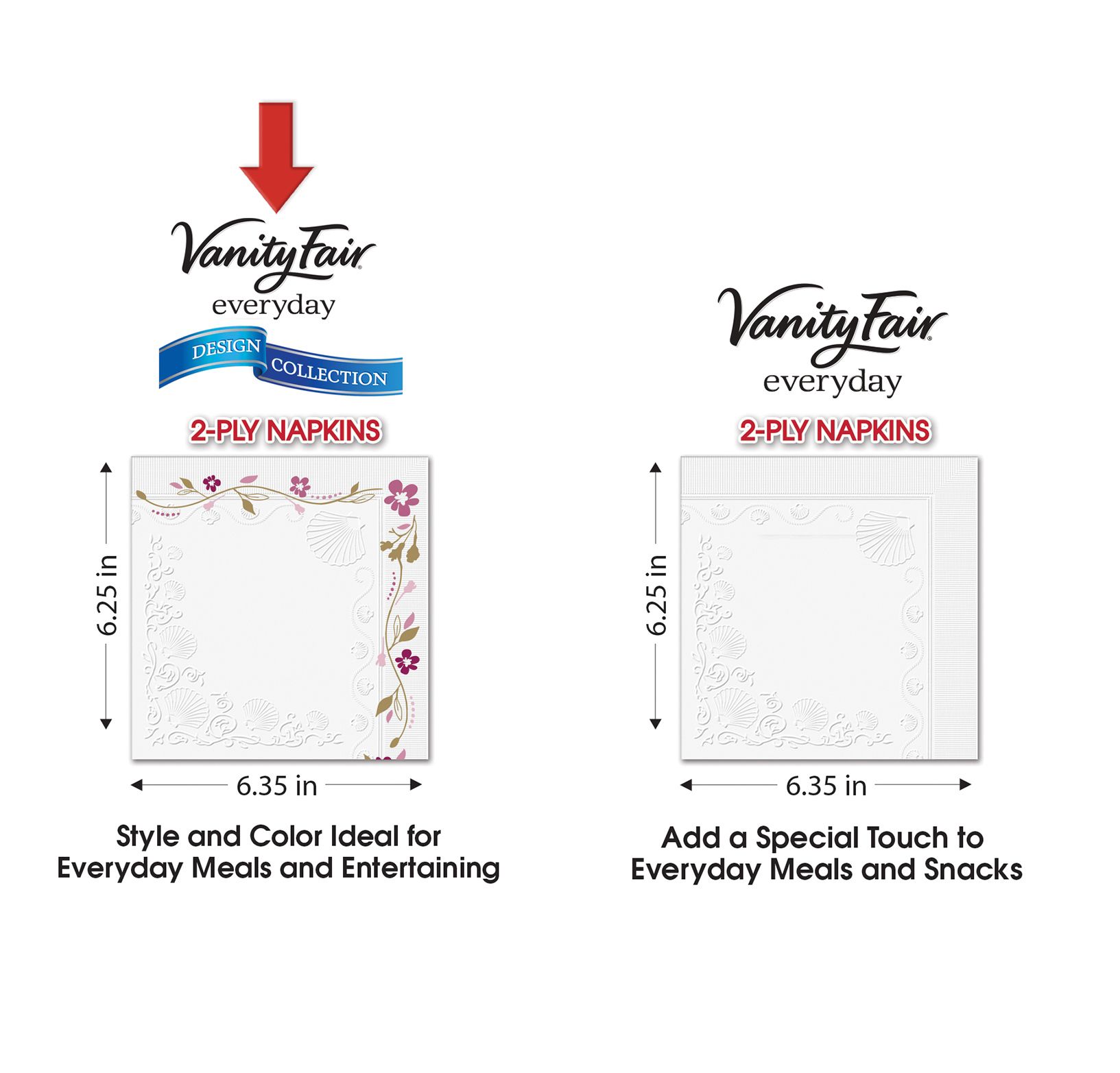 Vanity Fair Extra Absorbent Napkins not only look good, but also provide the quality you expect. Their attractive, embossed design adds an extra touch that makes an ordinary meal feel special.