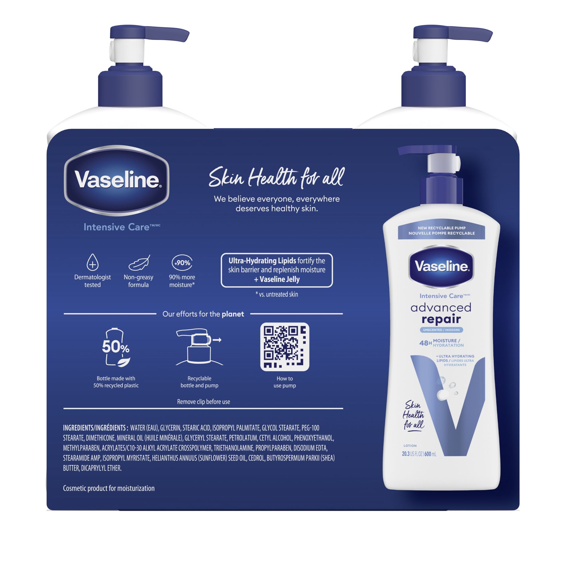 Vaseline Intensive Care Body Lotion, Advanced Repair, Unscented, 2 pk./20 oz. + Bonus 10 oz. Lotion