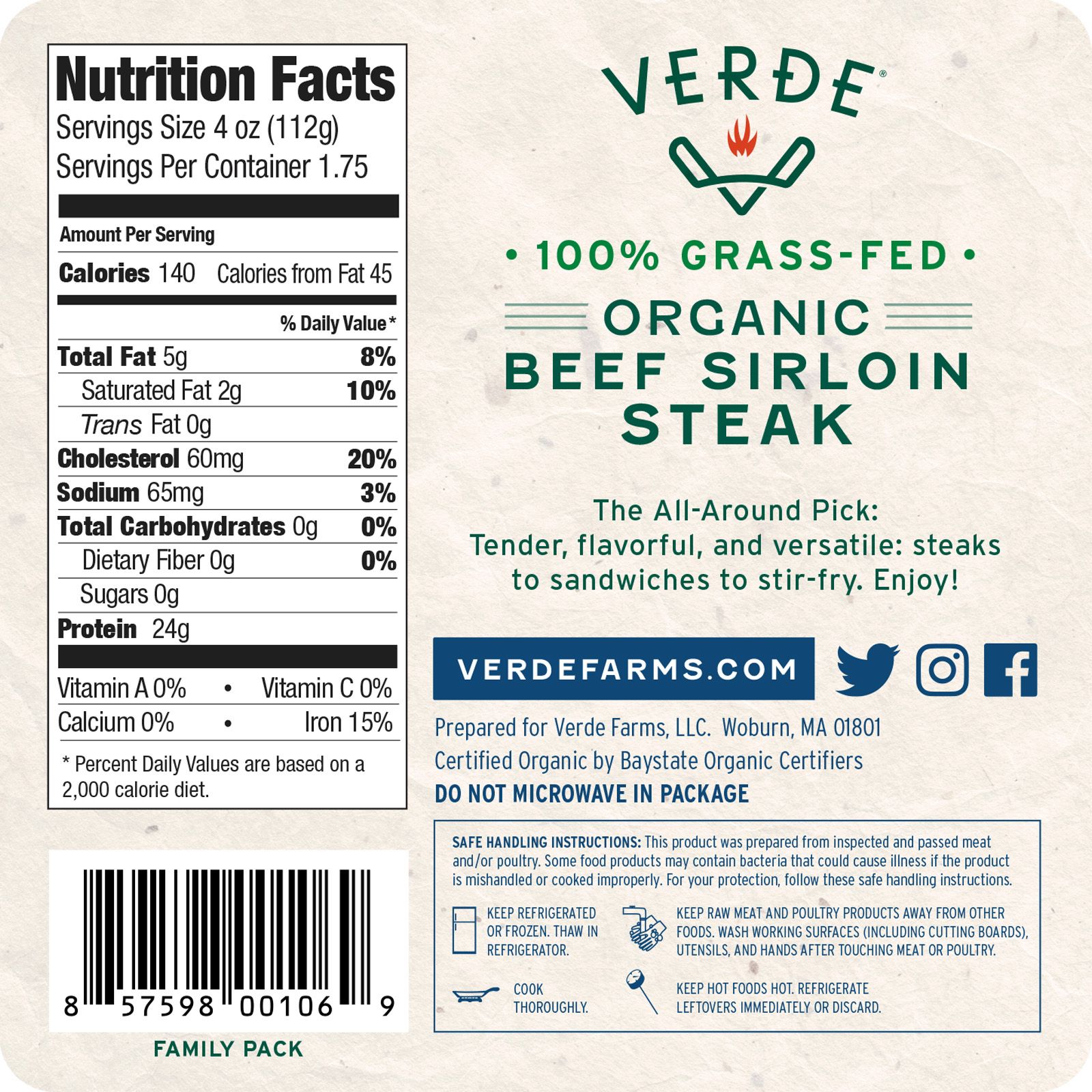 Verde Farms Organic Grass-Fed Beef Sirloin Steak, 3 pk./7 oz.
