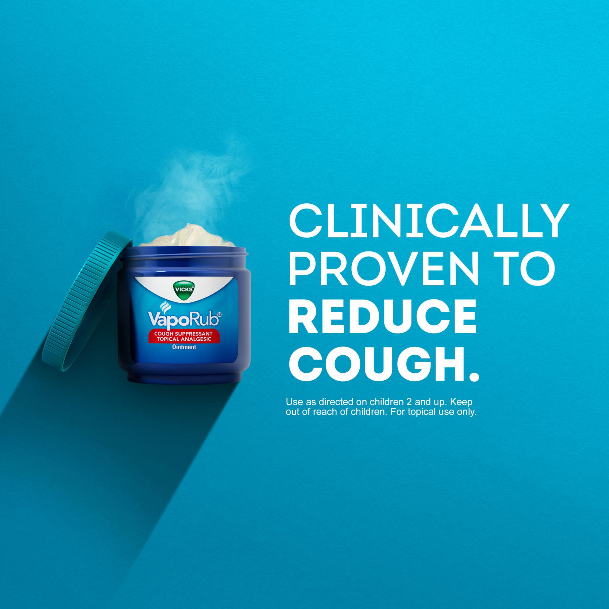 When cold season hits, Vicks VapoRub Cough Suppressant Topical Analgesic Ointment will be there for you and your family. When used on the chest and throat, Vicks VapoRub's and its medicated vapors work quickly to help relieve coughs due to a common cold. When used on muscles and joints, it helps alleviate the minor aches and pains that may accompany a common cold.
