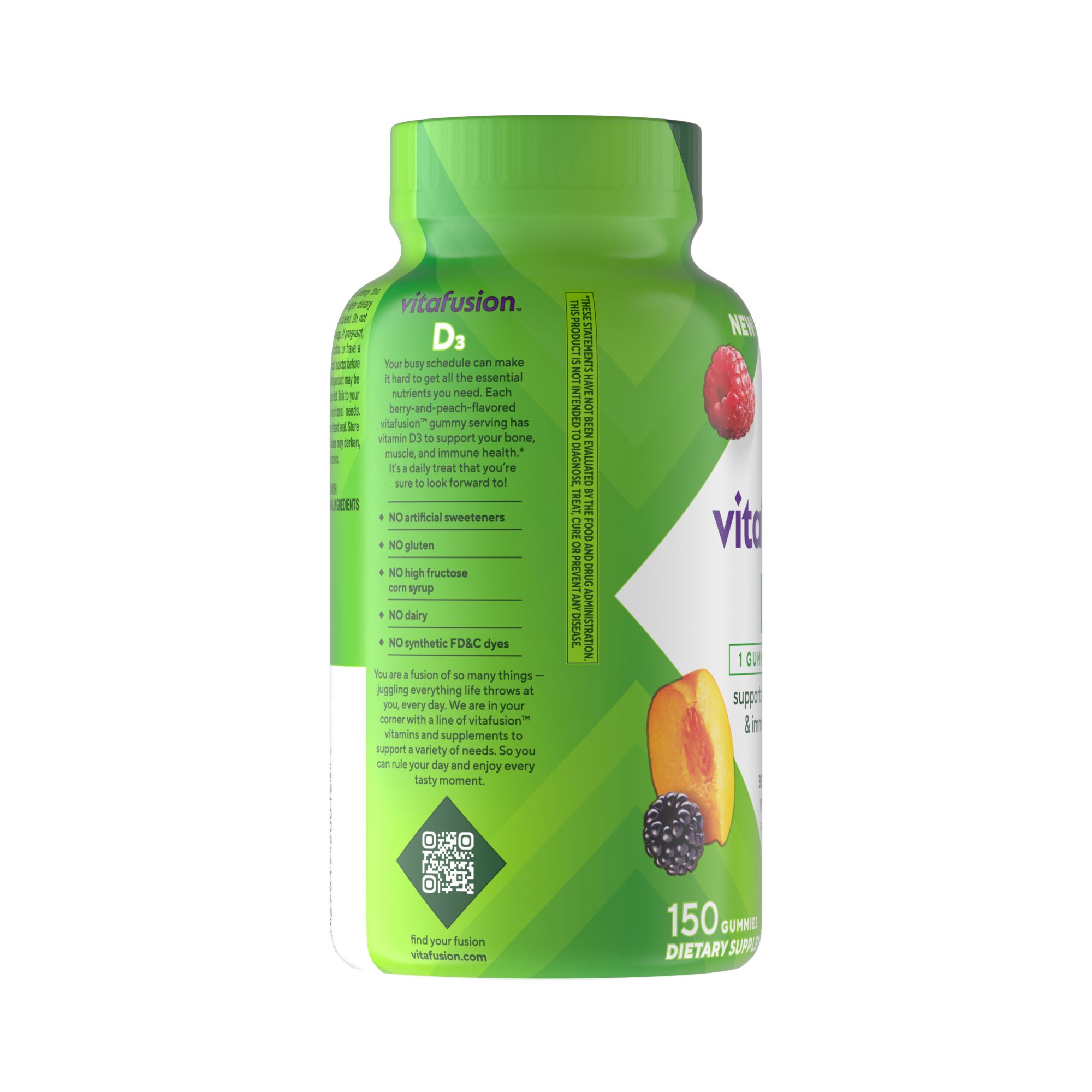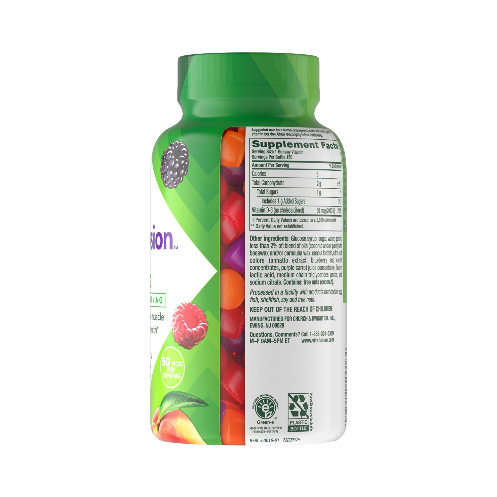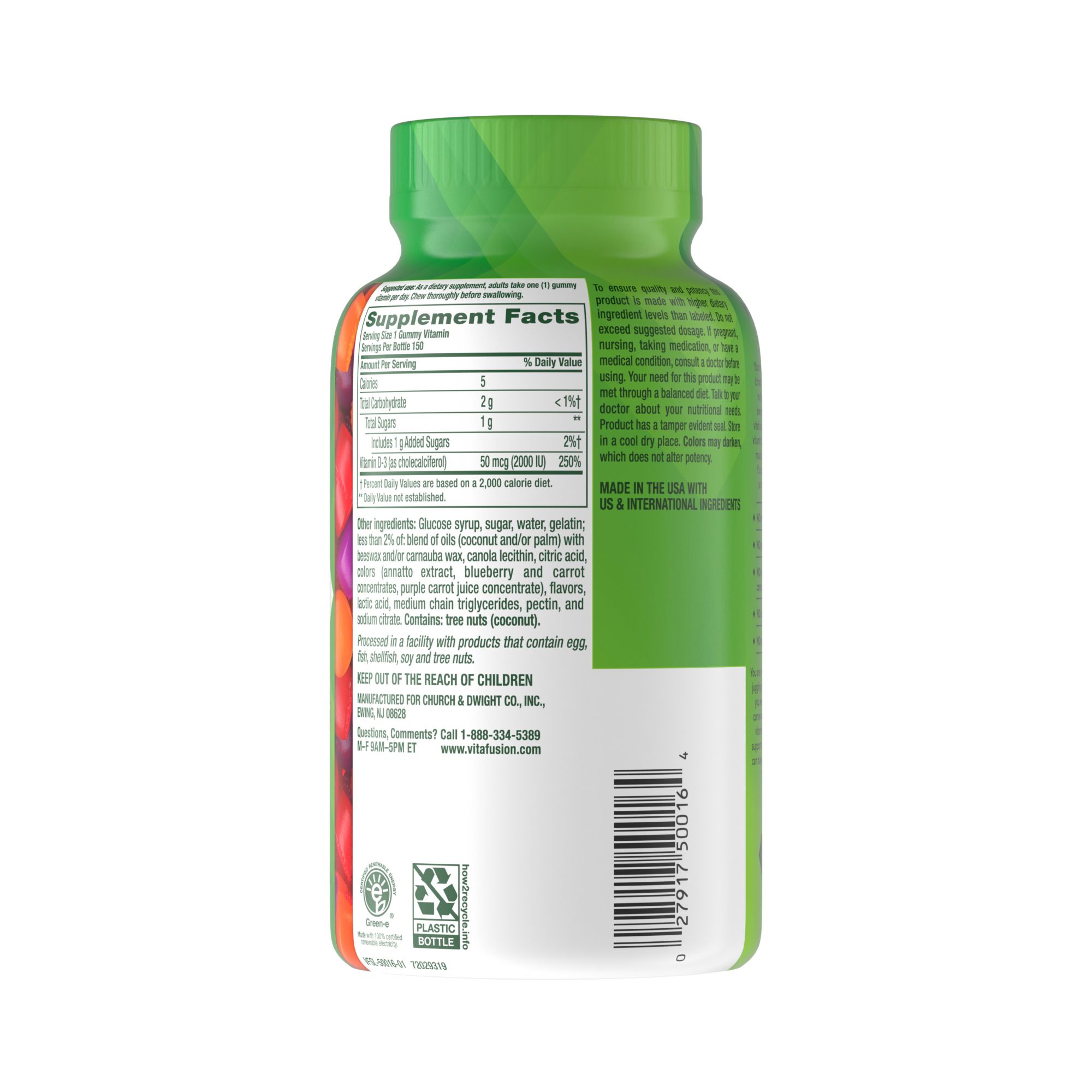 Each serving of Vitafusion Vitamin D Gummy Vitamins supports bones and teeth, as well as the immune system with 50 mcg (2,000 IU) of vitamin D3. Vitamin D, also known as the sunshine vitamin, aids in the absorption of calcium to help support strong bones and teeth. Vitamin Better! At Vitafusion, they believe taste and nutrition can be fused together to deliver the best vitamin experience, ensuring it’s an easy and delicious part of your day. For over 12 years, they’ve been helping people to live happy and healthy lives with their gummy vitamins and supplements. Vitafusion is the only gummy vitamin brand with products that have been awarded the ChefsBest Excellence award for taste. Anything is possible when great nutrition is your foundation.