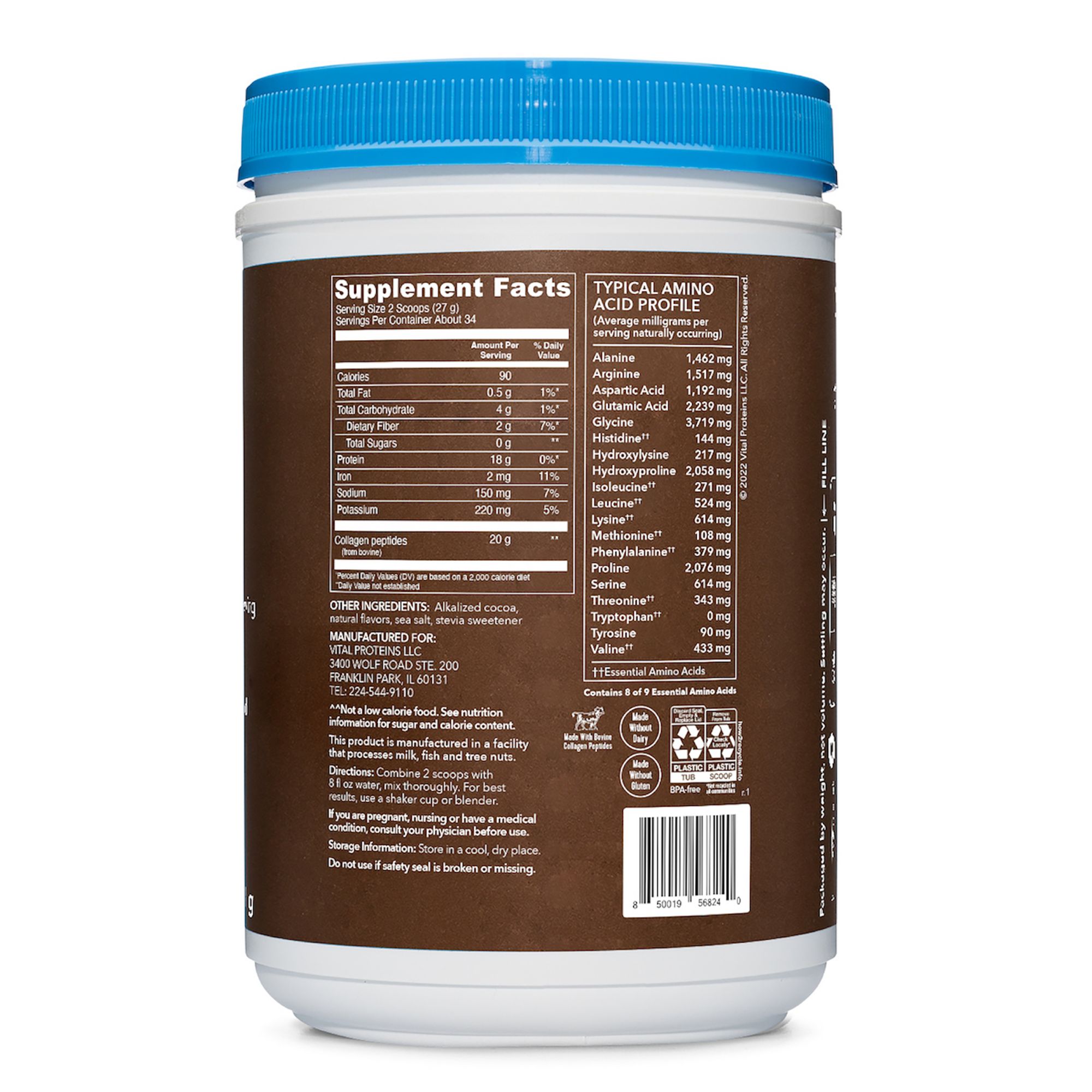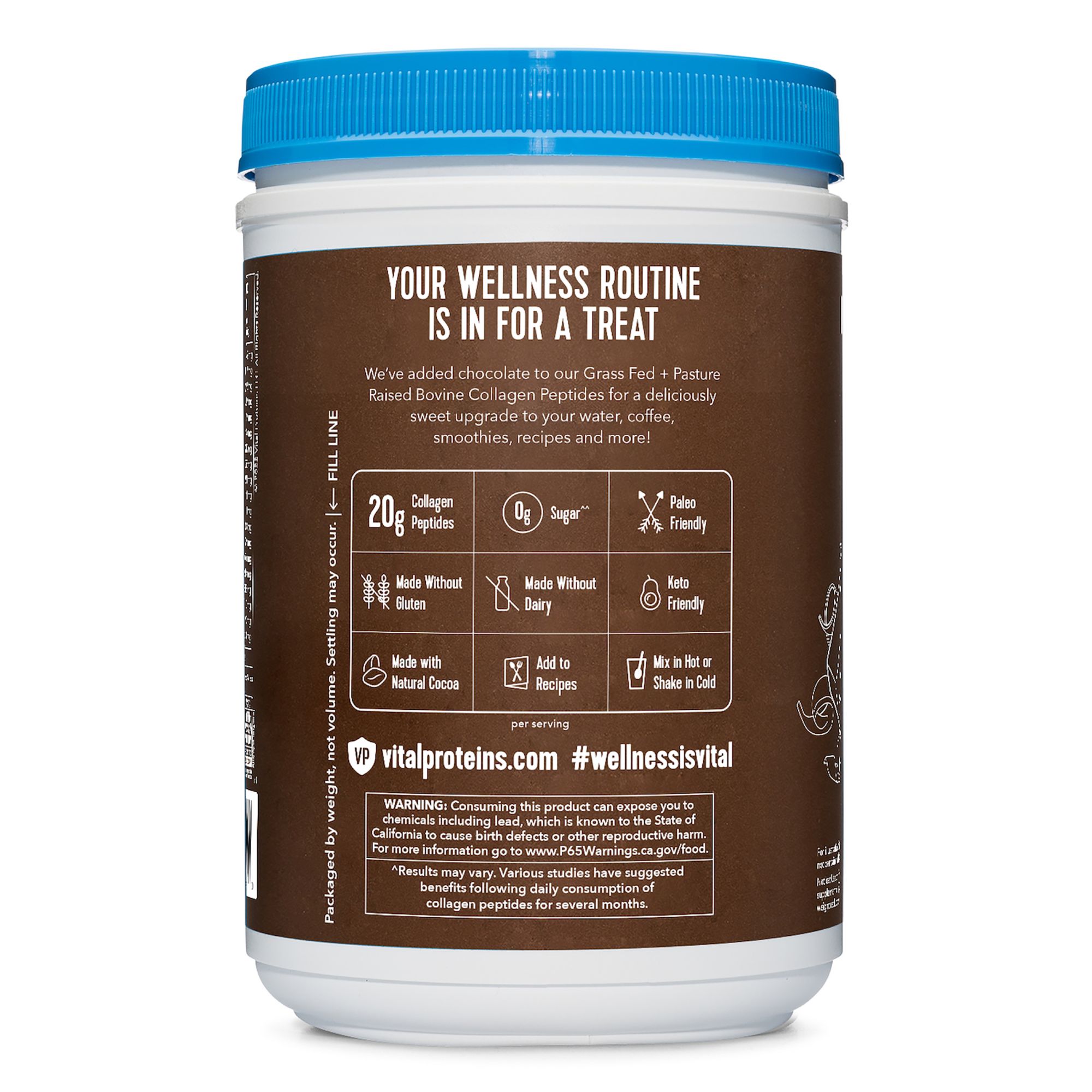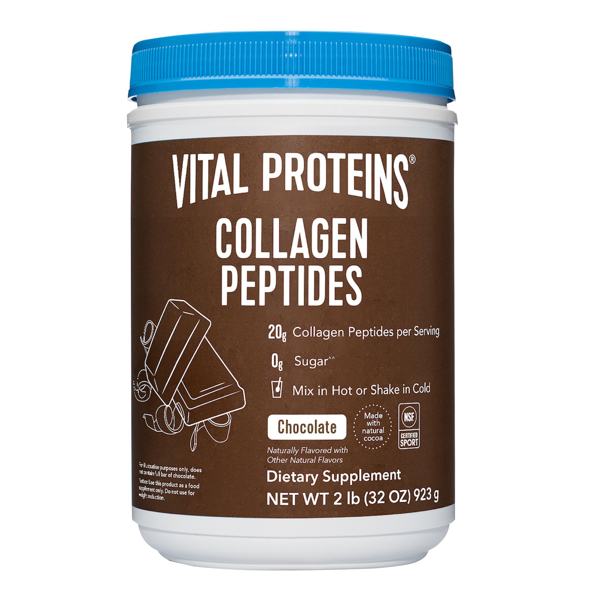 Includes chocolate collagen peptides powder, 32.5 oz.