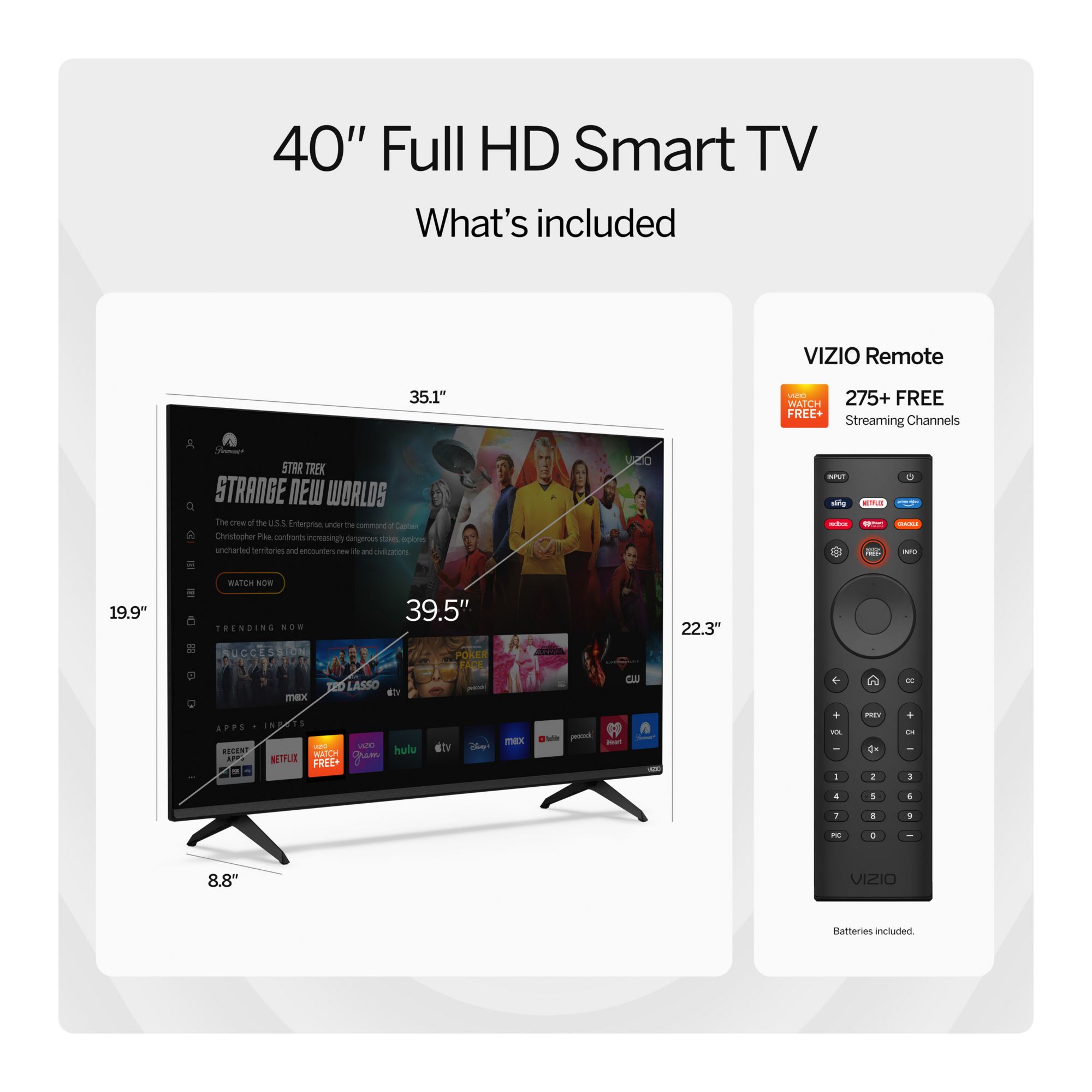 VIZIO 40" VFD40M-08 Full HD 1080p LED Smart TV with 3-Year Coverage