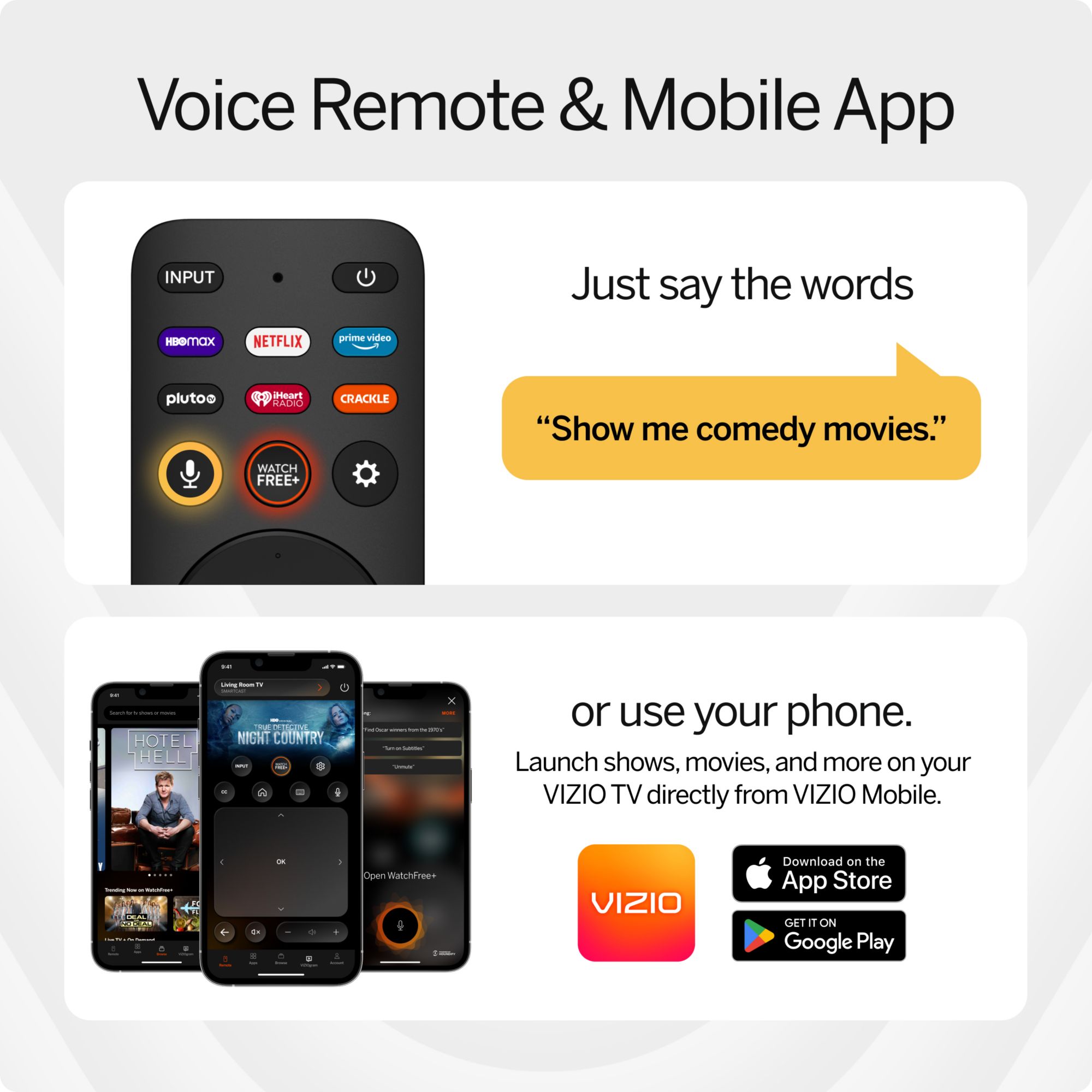 Give a voice to your commands: Browse your favorite apps and easily search and discover content with one click from your home screen. Even easier? Just say the words and the included VIZIO Voice Remote and free mobile app will do the work