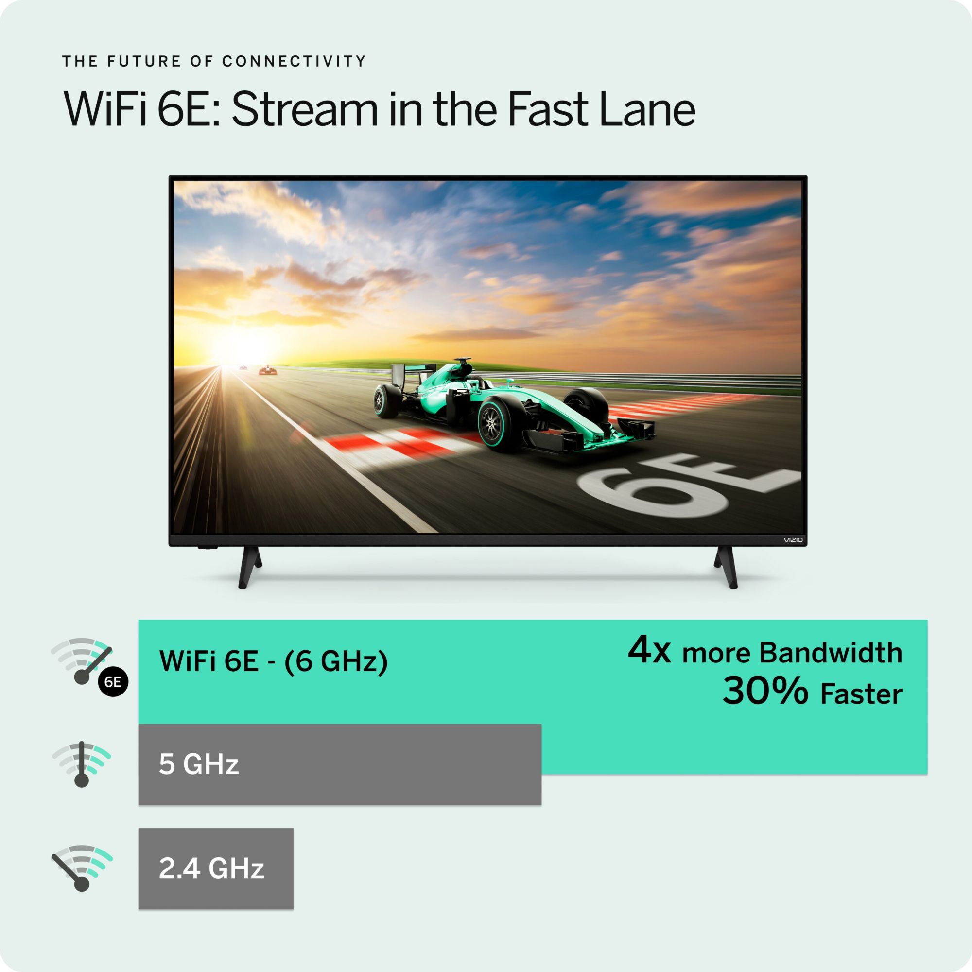 The Future of Connectivity Stream in the fast lane with WiFi 6E. Double the bandwidth of 5G, 6GHz acts as a superhighway, allowing you to stream more content without interrupting other connected devices in your Smart Home. That's ideal 4K streaming.